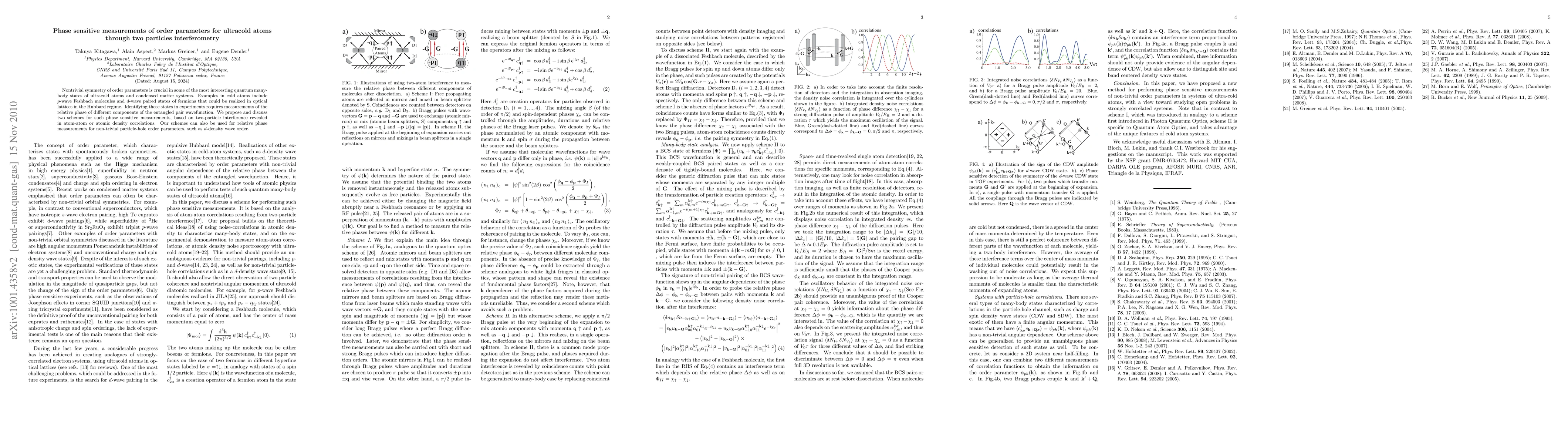 Researchers propose methods to measure order parameters in ultracold atoms using two-particle interference, which can reveal nontrivial symmetry and help identify complex quantum states.