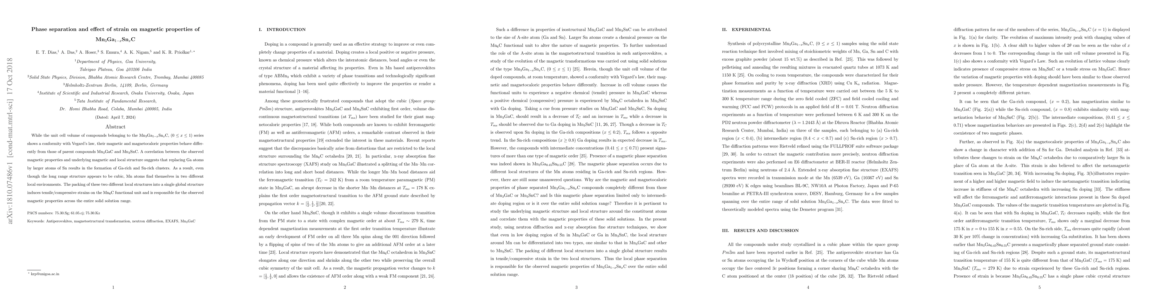 The study presents a detailed analysis of the magnetic and structural properties of Mn3Ga1-xSnxC compounds using advanced neutron and X-ray techniques, revealing the impact of strain on magnetic behavior.