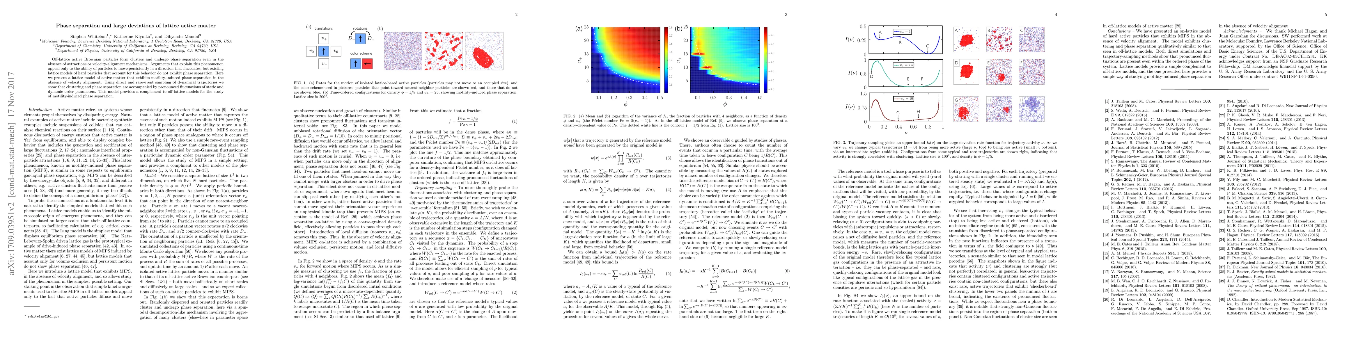 This paper introduces a lattice model of active matter that demonstrates motility-induced phase separation without velocity alignment, contrasting with existing lattice models. It reveals significant fluctuations in order parameters during clustering and phase separation, offering a new perspective on the phenomenon.