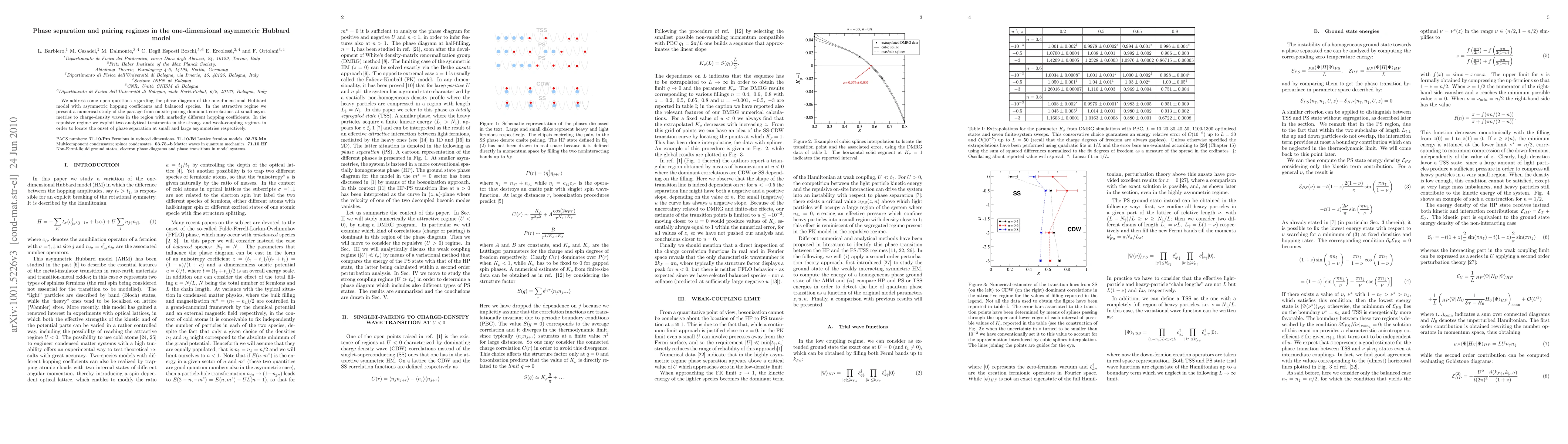 We address some open questions regarding the phase diagram of the one-dimensional Hubbard model with asymmetric hopping coefficients and balanced species. In the attractive regime we present a numerical study of the passage from on-site pairing dominant correlations at small asymmetries to charge-density waves in the region with markedly different hopping coefficients. In the repulsive regime we exploit two analytical treatments in the strong- and weak-coupling regimes in order to locate the onset of phase separation at small and large asymmetries respectively.