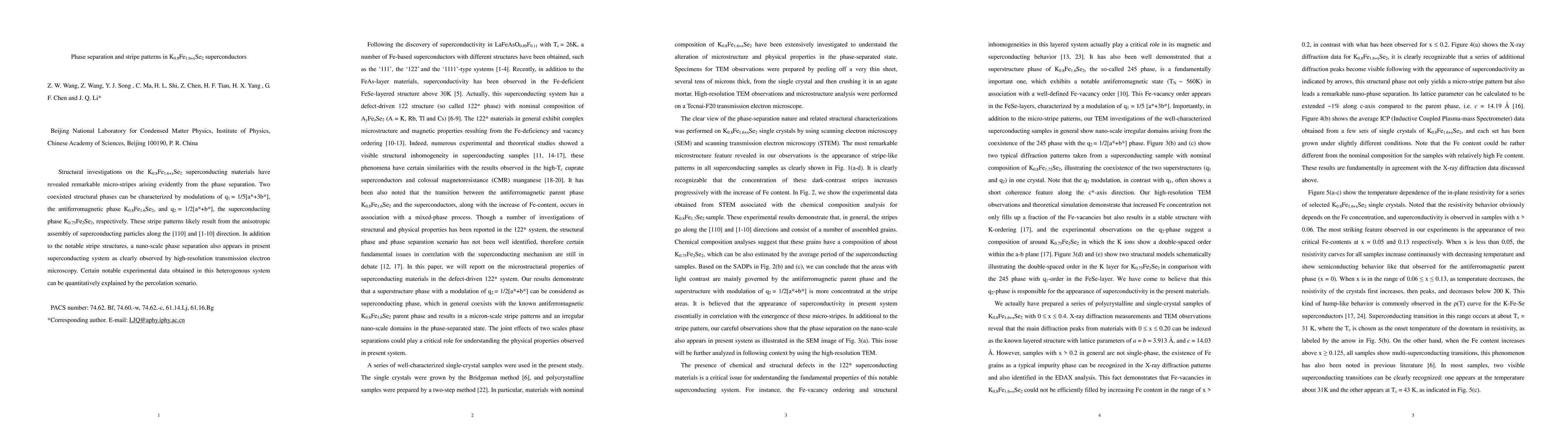 Researchers have discovered phase separation in a superconducting material K0.8Fe1.6+xSe2, resulting in stripe patterns that can be explained by anisotropic assembly of superconducting particles.