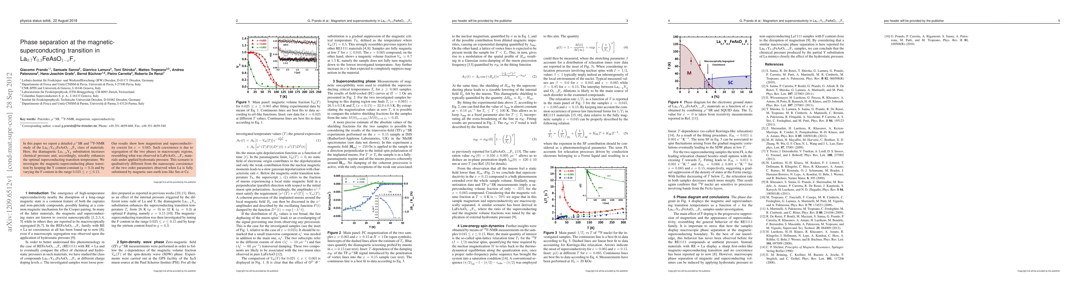 In this paper we report a detailed $\mu^{+}$SR and {}$^{19}$F-NMR study of the La$_{0.7}$Y$_{0.3}$FeAsO$_{1-x}$F$_{x}$ class of materials. Here, the diamagnetic La$_{1-y}$Y$_{y}$ substitution increases chemical pressure and, accordingly, sizeably enhances the optimal superconducting transition temperature. We investigate the magnetic-superconducting phase transition by keeping the Y content constant ($y = 0.3$) and by varying the F content in the range $0.025 \leq x \leq 0.15$. Our results show how magnetism and superconductivity coexist for $x = 0.065$. Such coexistence is due to segregation of the two phases in macroscopic regions, resembling what was observed in LaFeAsO$_{1-x}$F$_{x}$ materials under applied hydrostatic pressure. This scenario is qualitatively different from the nanoscopic coexistence of the two order parameters observed when La is fully substituted by magnetic rare-earth ions like Sm or Ce.