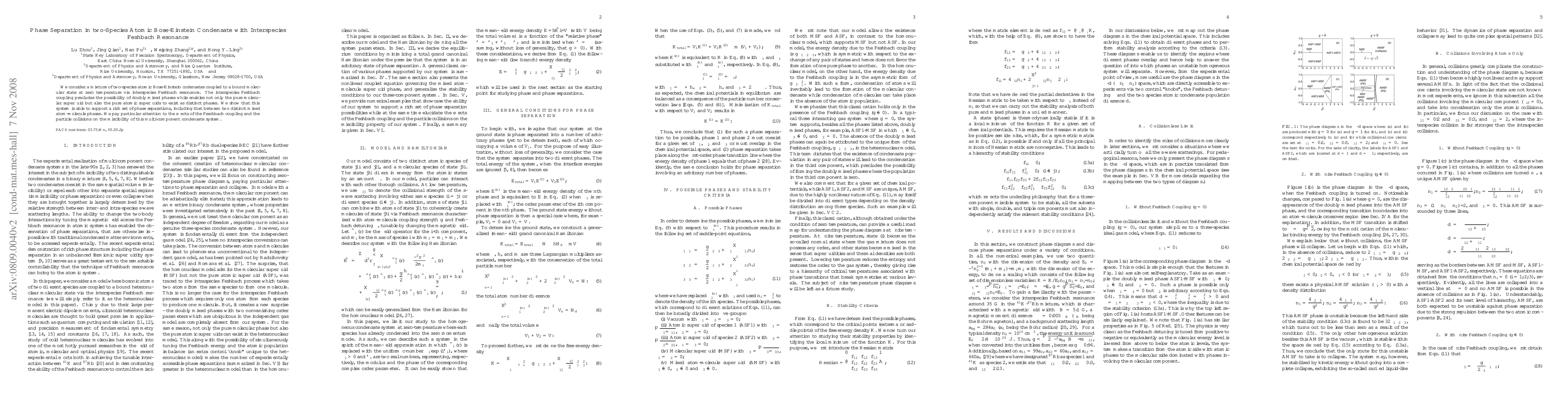 This research investigates a two-species atomic Bose-Einstein condensate under interspecies Feshbach resonance, revealing that it supports distinct phases including pure atomic and molecular superfluids, as well as mixed atom-molecule phases. The study highlights the interplay between Feshbach coupling and particle collisions in determining the miscibility of these phases.