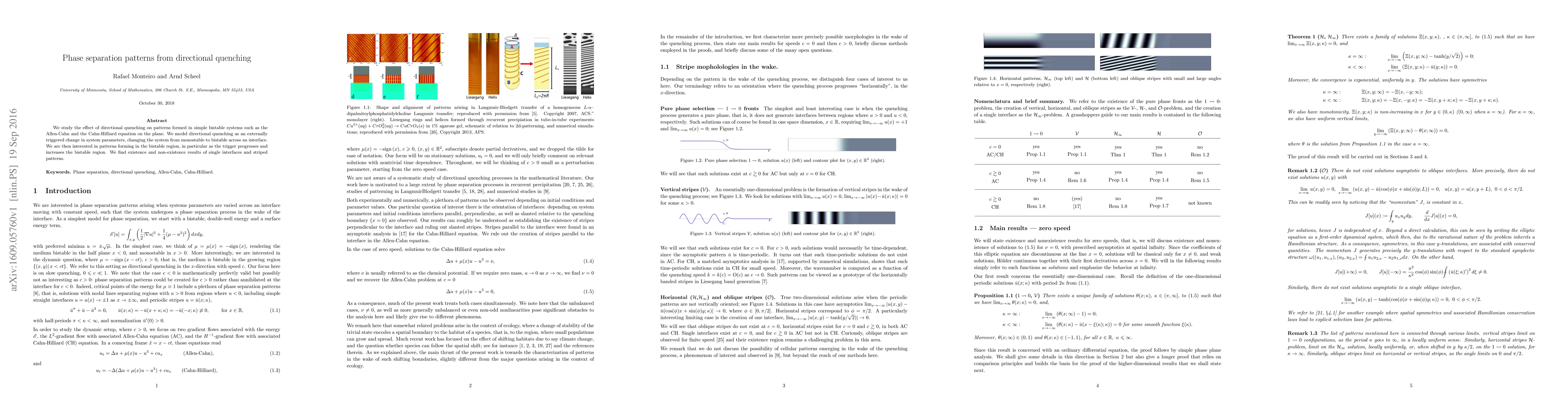 This paper investigates how directional quenching—an externally triggered change in system parameters—affects the formation of patterns in simple bistable systems like the Allen-Cahn and Cahn-Hilliard equations. The study finds both existence and non-existence results for single interfaces and striped patterns as the bistable region expands.