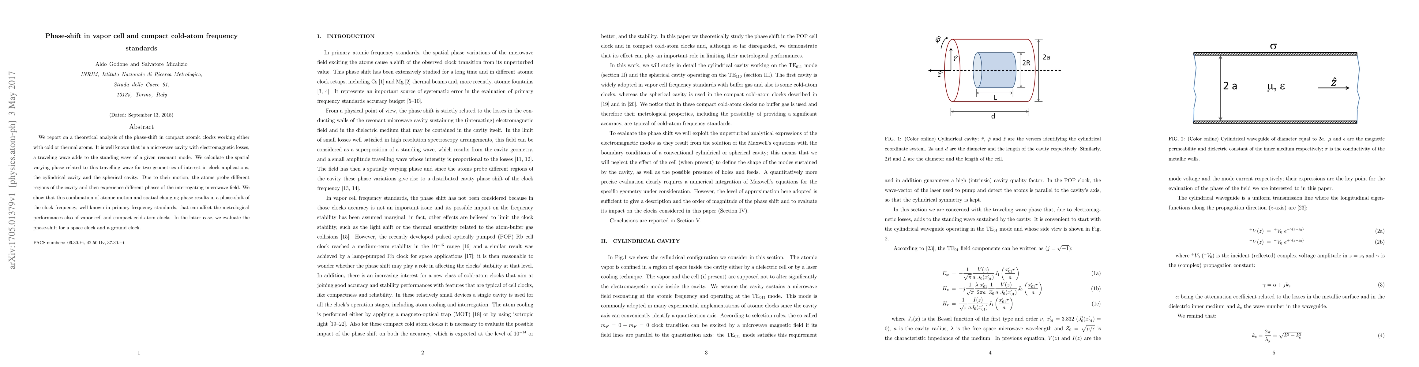 This paper theoretically analyzes phase-shifts in compact atomic clocks using cold or thermal atoms, focusing on cylindrical and spherical cavity geometries. It demonstrates that atomic motion through varying phase regions of the microwave field can lead to frequency shifts affecting metrological performance, with specific evaluations for space and ground clocks.