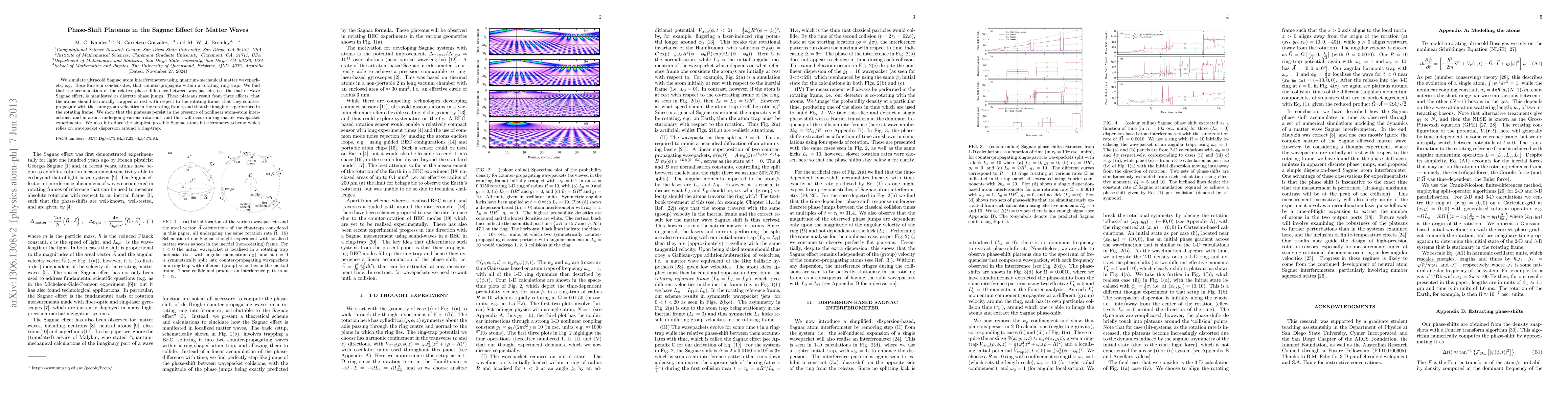 The paper presents a comprehensive numerical study of matter wave Sagnac interferometry, identifying phase-shift plateaus and proposing a simplified dispersion-based interferometer scheme.