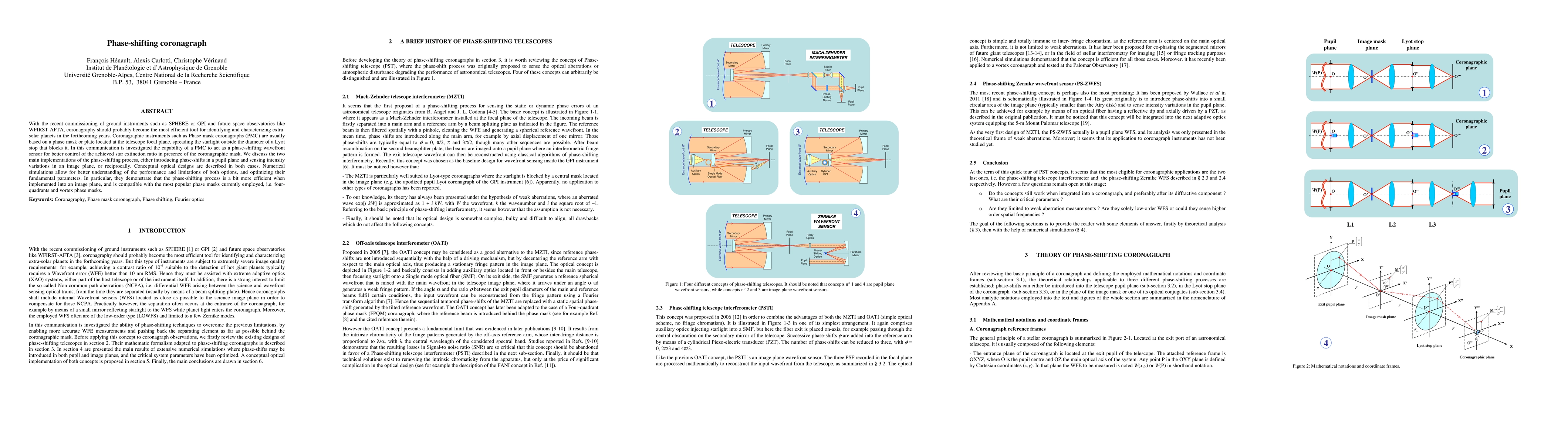 This paper investigates the use of phase-shifting coronagraphs to enhance starlight suppression in extra-solar planet detection, comparing two implementations: phase-shifting in the pupil plane versus the image plane. Numerical simulations show that image plane implementation is slightly more efficient and compatible with common phase masks.