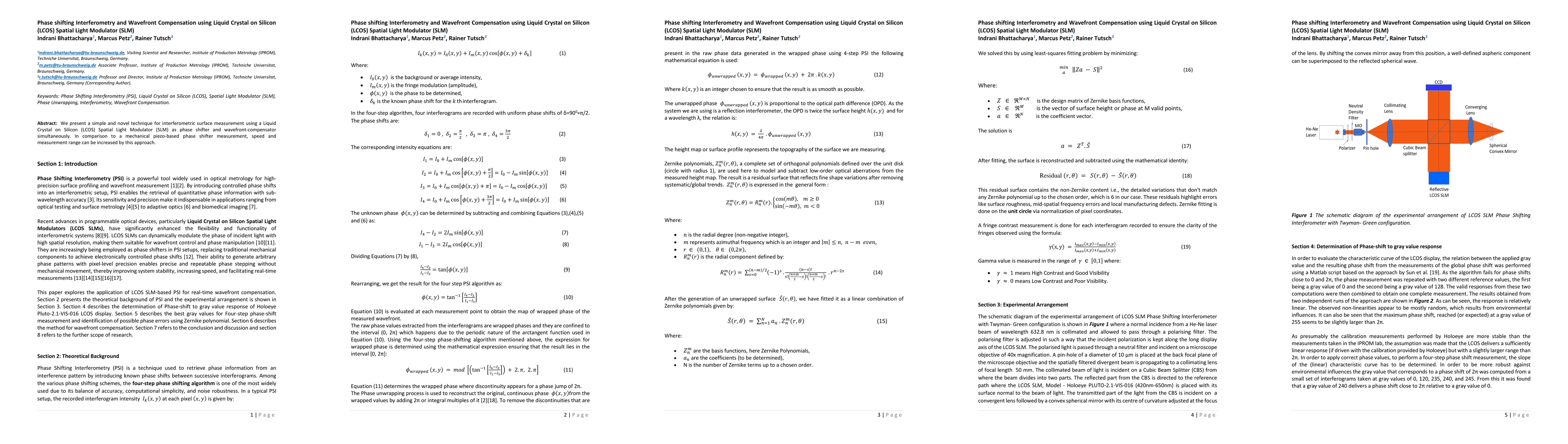 A new technique uses a Liquid Crystal on Silicon Spatial Light Modulator to measure surfaces with increased speed and range compared to traditional piezo-based phase shifters.