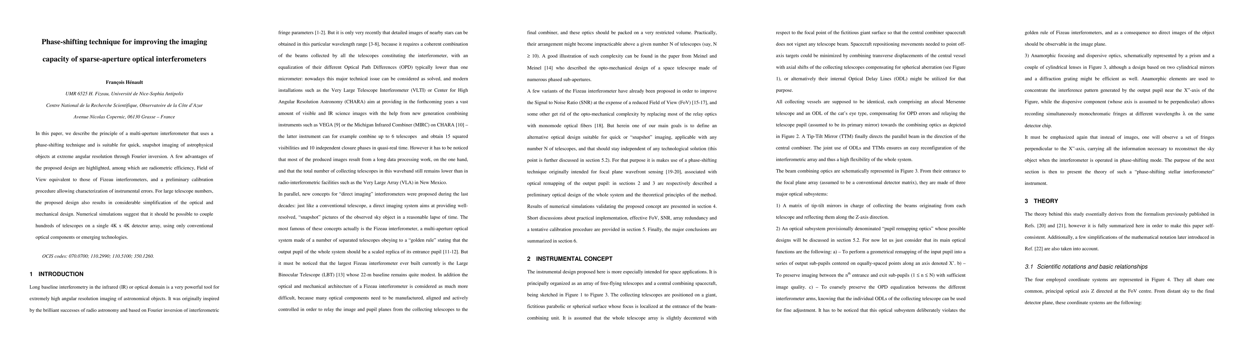 This paper proposes a phase-shifting technique for multi-aperture interferometers to achieve high-resolution snapshot imaging of astrophysical objects. The design offers radiometric efficiency, a wide field of view, and simplified optical/mechanical systems for large telescope arrays.