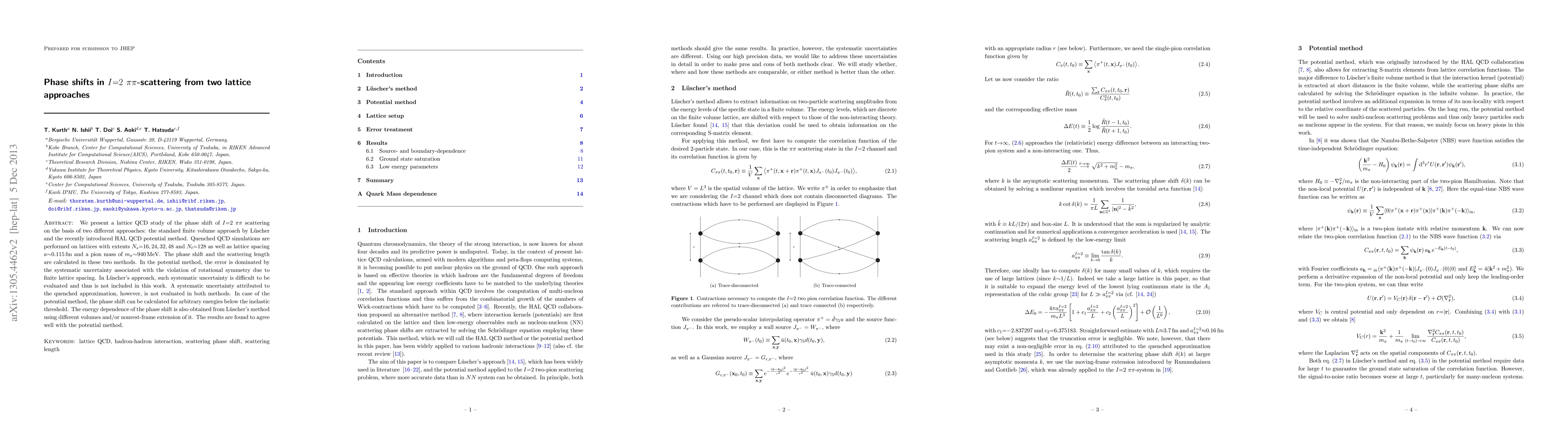 Researchers used two lattice QCD approaches to study phase shifts in pion-pion scattering, finding that results agree well with the potential method, which can calculate phase shift for arbitrary energies below threshold.