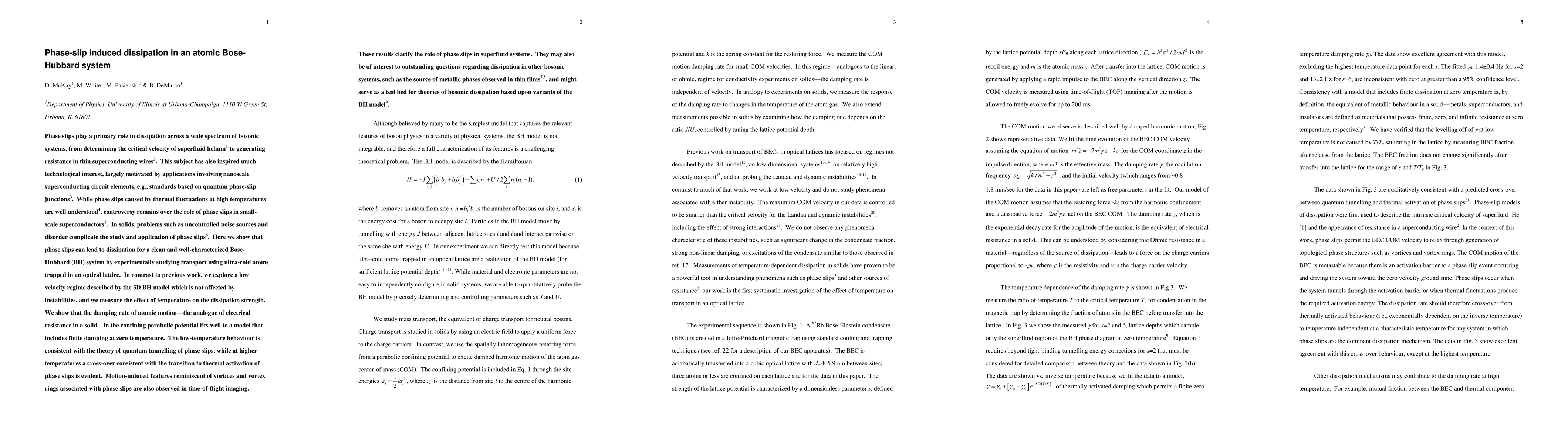 Researchers study phase slips in a clean atomic Bose-Hubbard system, finding that they can lead to dissipation at low temperatures, with behavior consistent with quantum tunnelling of phase slips.