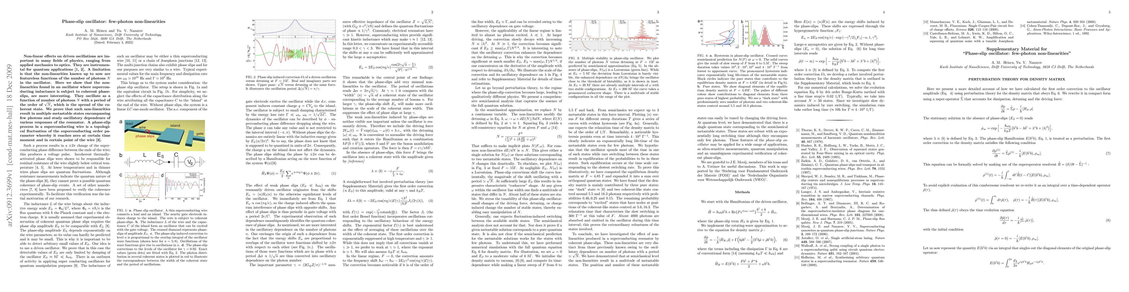 Non-linear effects on driven oscillations are important in many fields of physics, ranging from applied mechanics to optics. They are instrumental for quantum applications. A limitation is that the non-linearities known up to now are featureless functions of the number of photons N in the oscillator. Here we show that the non-linearities found in an oscillator where superconducting inductance is subject to coherent phase-slips, are more interesting. They oscillate as a function of number of photons N with a period of the order of square root of N, which is the spread of the coherent state. We prove that such non-linearities result in multiple metastable states encompassing few photons and study oscillatory dependence of various responses of the resonator. The experimental realization of our proposal can deliver an unambiguous verification of coherent quantum phase-slips.