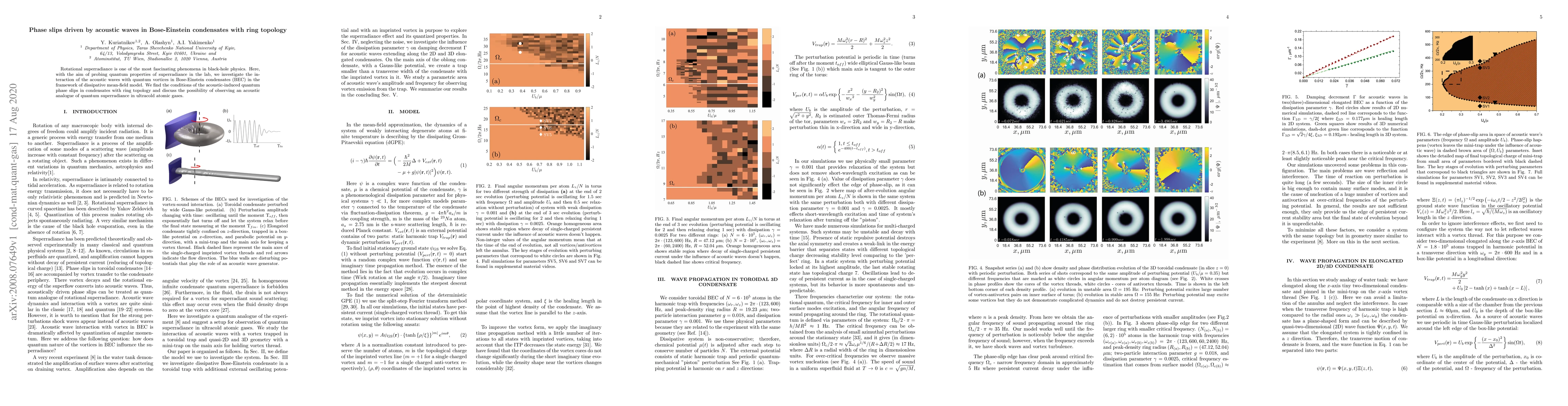 This paper explores the interaction of acoustic waves with quantum vortices in Bose-Einstein condensates (BEC) with ring topology, identifying conditions for acoustic-induced quantum phase slips. It discusses the potential for observing an acoustic analogue of quantum superradiance in ultracold atomic gases.