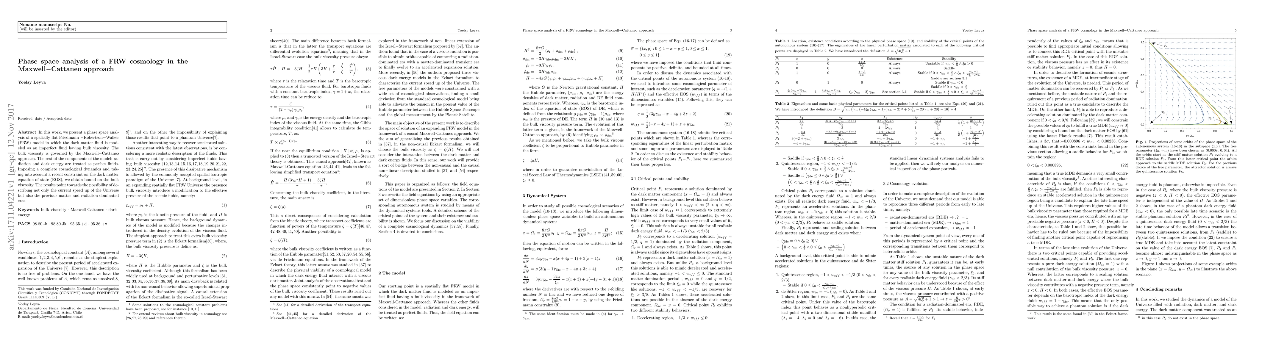 This paper conducts a phase space analysis of a flat FRW cosmology where dark matter is modeled as an imperfect fluid with bulk viscosity governed by the Maxwell-Cattaneo approach. The study derives bounds on the bulk viscosity and suggests it can describe both the current accelerated expansion and earlier matter and radiation-dominated epochs.