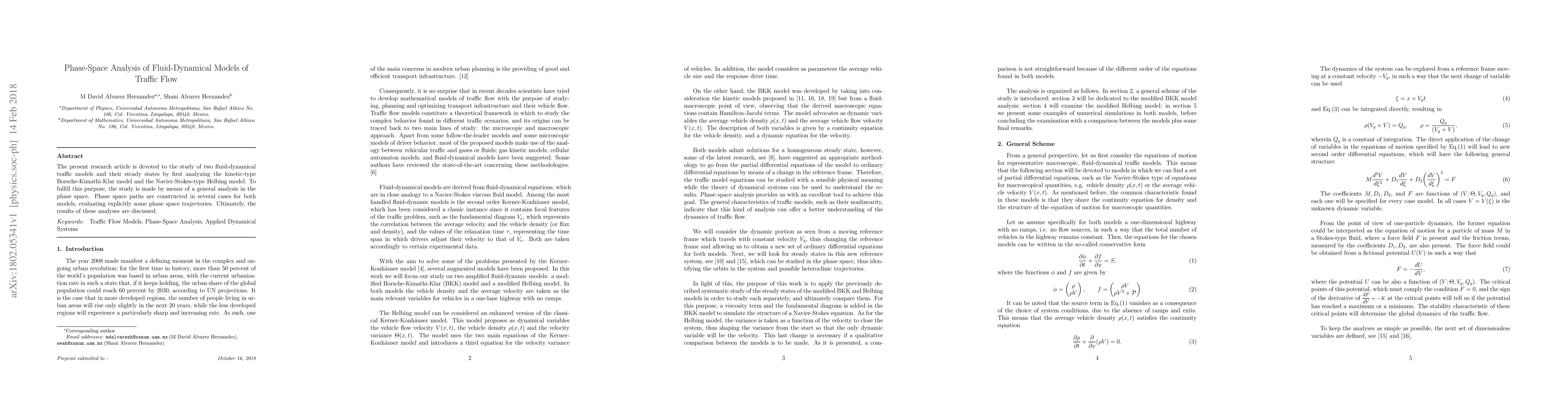 Researchers analyzed two fluid-dynamical models of traffic flow using phase space analysis to study their steady states. The findings provide insight into the behavior of traffic patterns.