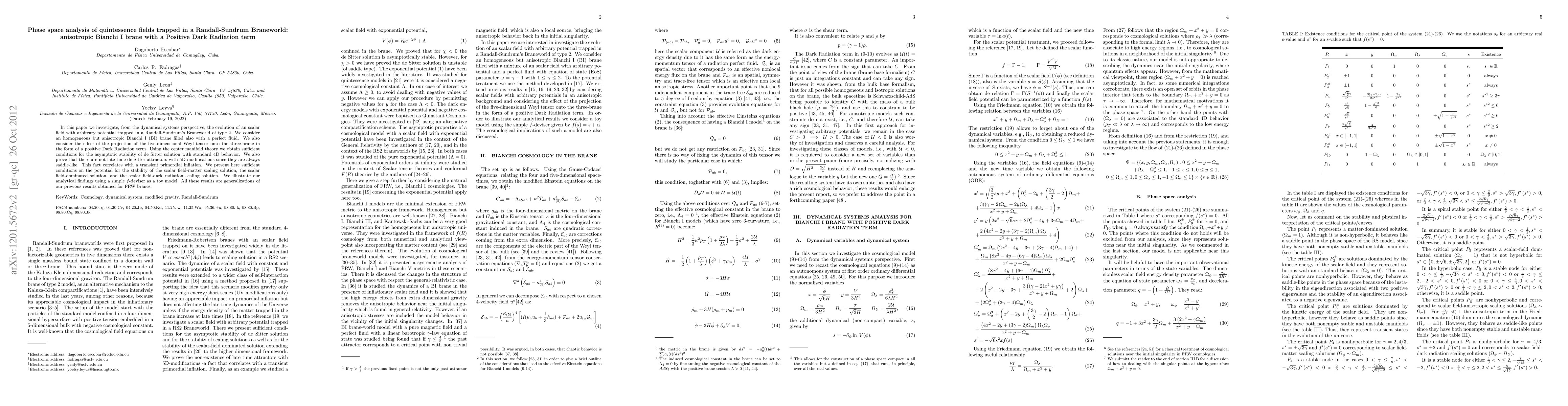 In this paper we investigate, from the dynamical systems perspective, the evolution of an scalar field with arbitrary potential trapped in a Randall-Sundrum's Braneworld of type 2. We consider an homogeneous but anisotropic Bianchi I (BI) brane filled also with a perfect fluid. We also consider the effect of the projection of the five-dimensional Weyl tensor onto the three-brane in the form of a positive Dark Radiation term. Using the center manifold theory we obtain sufficient conditions for the asymptotic stability of de Sitter solution with standard 4D behavior. We also prove that there are not late time de Sitter attractors with 5D-modifications since they are always saddle-like. This fact correlates with a transient primordial inflation. We present here sufficient conditions on the potential for the stability of the scalar field-matter scaling solution, the scalar field-dominated solution, and the scalar field-dark radiation scaling solution. We illustrate our analytical findings using a simple $f$-deviser as a toy model. All these results are generalizations of our previous results obtained for FRW branes.