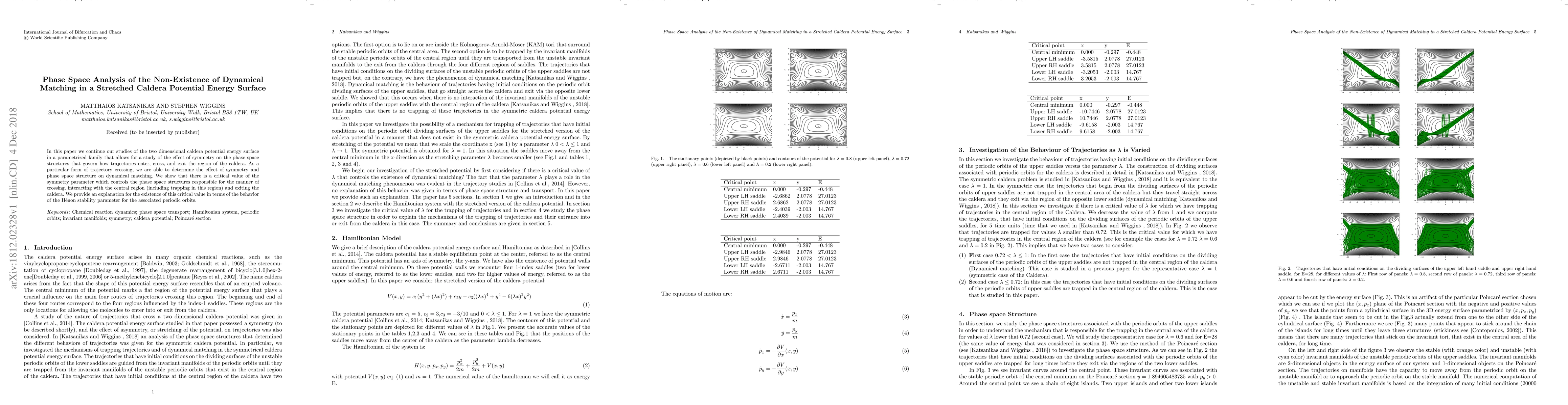 This paper investigates the two-dimensional caldera potential energy surface, focusing on how symmetry influences phase space structures and dynamical matching. It identifies a critical symmetry parameter value that governs trajectory behavior, explaining its effect through the Henon stability parameter of periodic orbits.