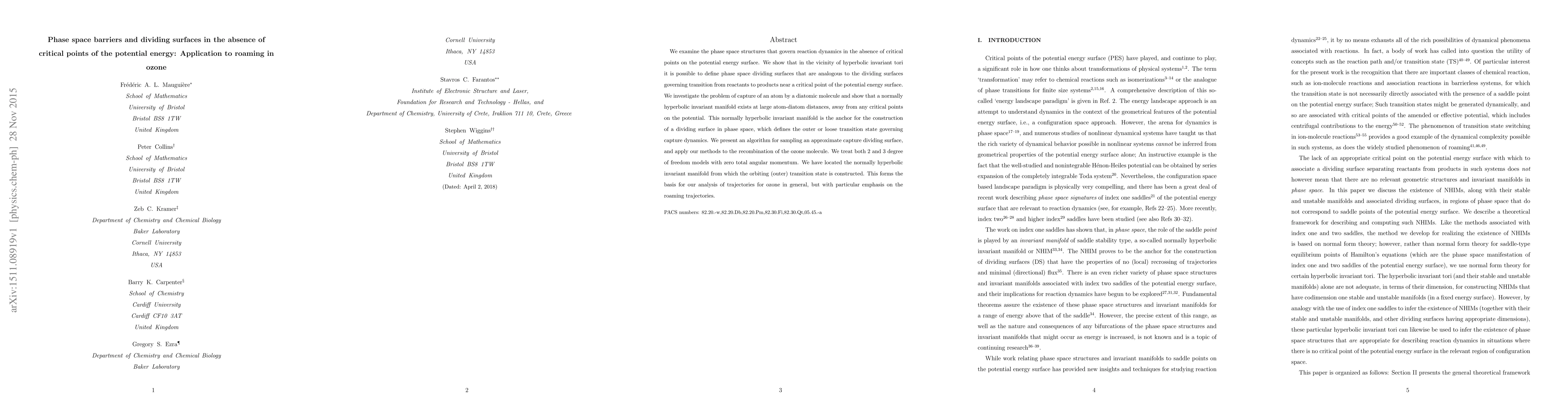 We examine the phase space structures that govern reaction dynamics in the absence of critical points on the potential energy surface. We show that in the vicinity of hyperbolic invariant tori it is possible to define phase space dividing surfaces that are analogous to the dividing surfaces governing transition from reactants to products near a critical point of the potential energy surface. We investigate the problem of capture of an atom by a diatomic molecule and show that a normally hyperbolic invariant manifold exists at large atom-diatom distances, away from any critical points on the potential. This normally hyperbolic invariant manifold is the anchor for the construction of a dividing surface in phase space, which defines the outer or loose transition state governing capture dynamics. We present an algorithm for sampling an approximate capture dividing surface, and apply our methods to the recombination of the ozone molecule. We treat both 2 and 3 degree of freedom models with zero total angular momentum. We have located the normally hyperbolic invariant manifold from which the orbiting (outer) transition state is constructed. This forms the basis for our analysis of trajectories for ozone in general, but with particular emphasis on the roaming trajectories.