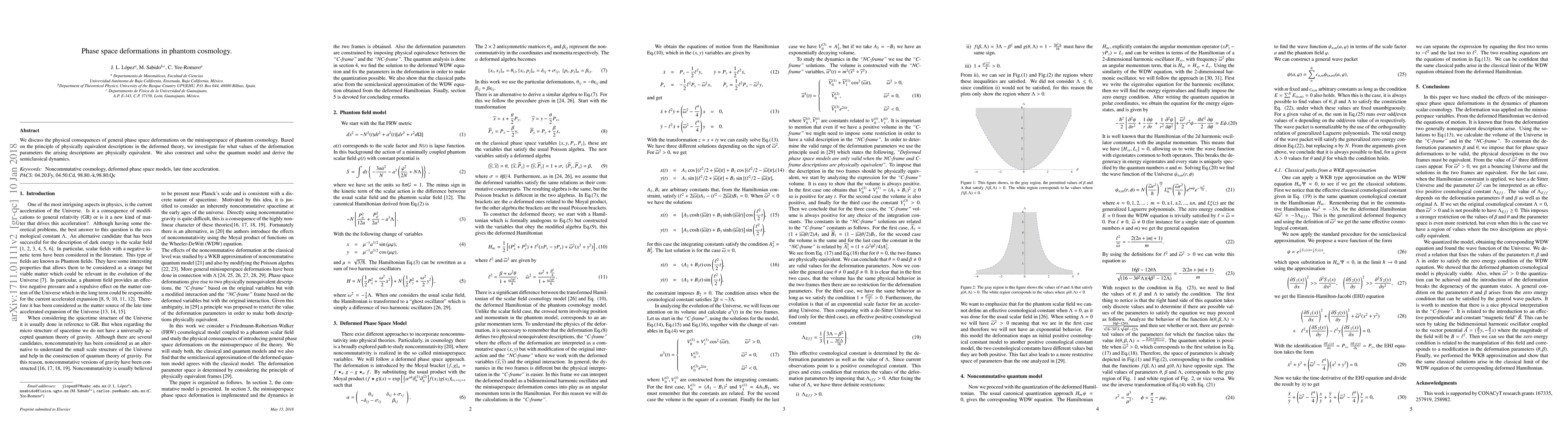 The paper introduces a deformed phase space model for phantom cosmology, constrains deformation parameters to ensure physical equivalence between two frames, and develops a noncommutative quantum model with a wave function for the universe.