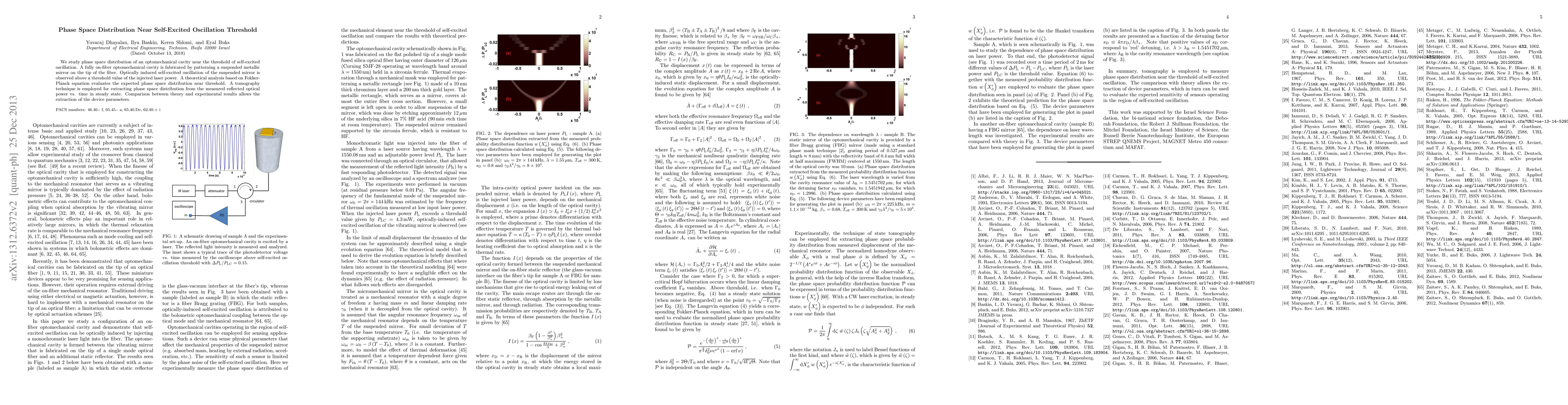Researchers study phase space distribution near the threshold of self-excited oscillation in an optomechanical cavity, comparing theoretical predictions with experimental results to extract device parameters.
