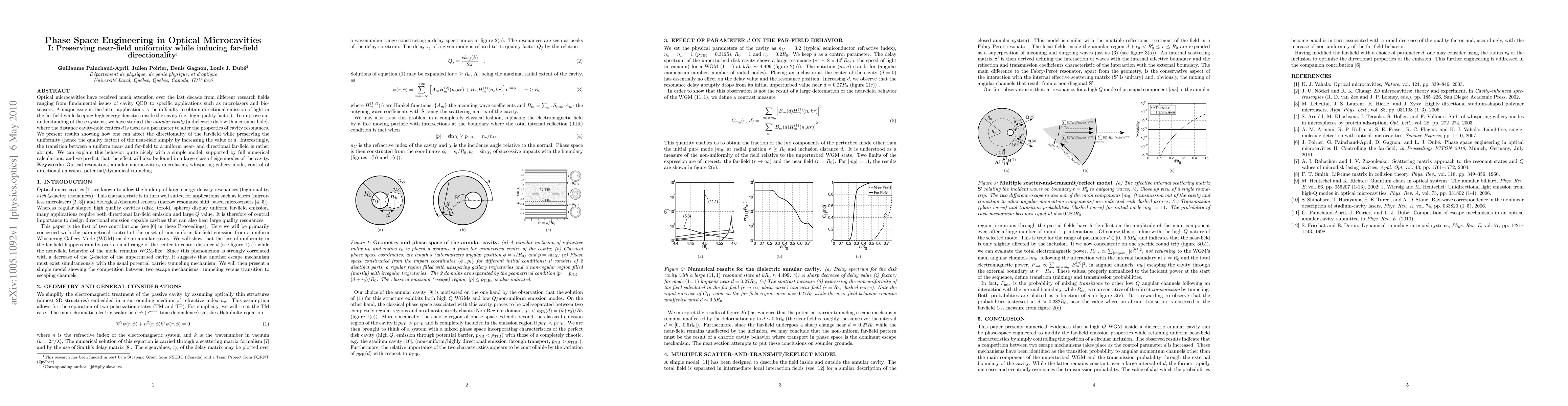 Optical microcavities have received much attention over the last decade from different research fields ranging from fundamental issues of cavity QED to specific applications such as microlasers and bio-sensors. A major issue in the latter applications is the difficulty to obtain directional emission of light in the far-field while keeping high energy densities inside the cavity (i.e. high quality factor). To improve our understanding of these systems, we have studied the annular cavity (a dielectric disk with a circular hole), where the distance cavity-hole centers, d, is used as a parameter to alter the properties of cavity resonances. We present results showing how one can affect the directionality of the far-field while preserving the uniformity (hence the quality factor) of the near-field simply by increasing the value of d. Interestingly, the transition between a uniform near- and far-field to a uniform near- and directional far-field is rather abrupt. We can explain this behavior quite nicely with a simple model, supported by full numerical calculations, and we predict that the effect will also be found in a large class of eigenmodes of the cavity.
