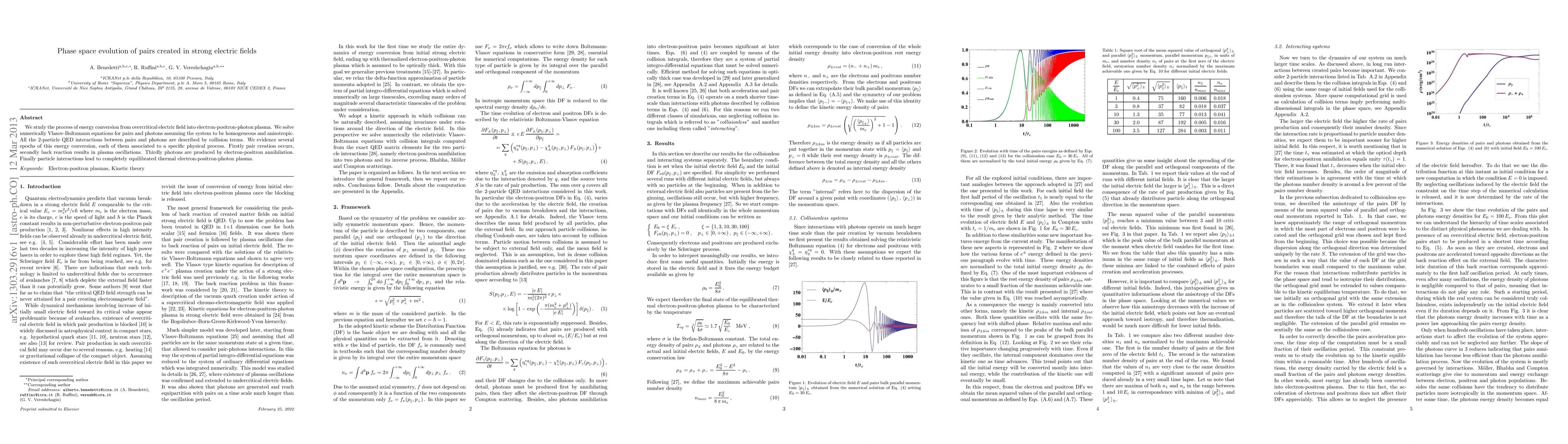 Researchers studied energy conversion from strong electric fields to electron-positron-photon plasma, finding four distinct stages: pair creation, plasma oscillations, photon production through annihilation, and equilibration into a thermal plasma.
