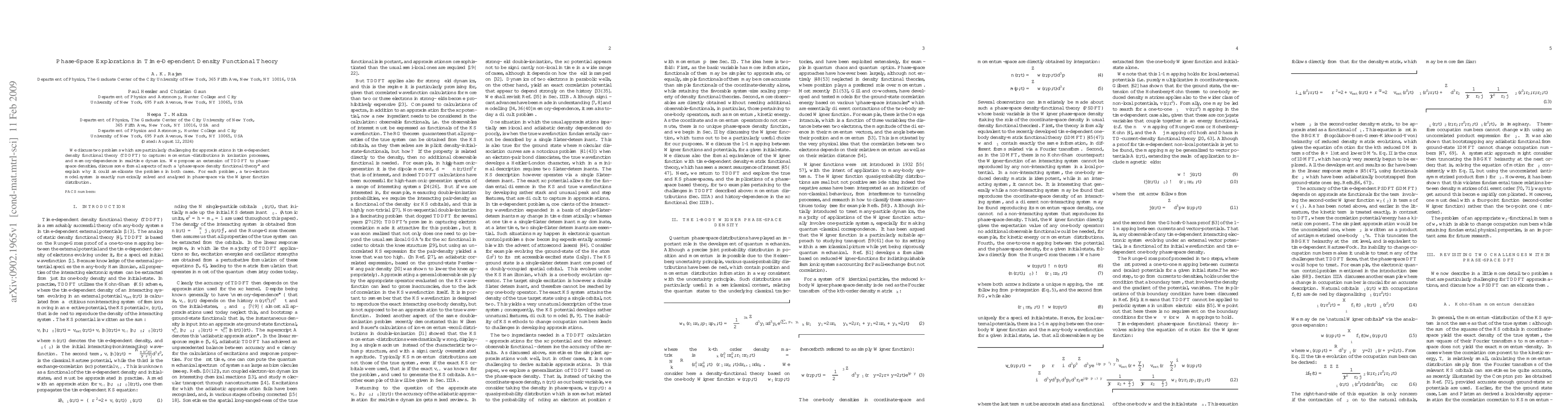 This paper proposes an extension of time-dependent density functional theory (TDDFT) to phase-space densities to address challenges in capturing momentum distributions in ionization processes and memory-dependence in real-time dynamics. It analyzes a two-electron model system using the Wigner function distribution.