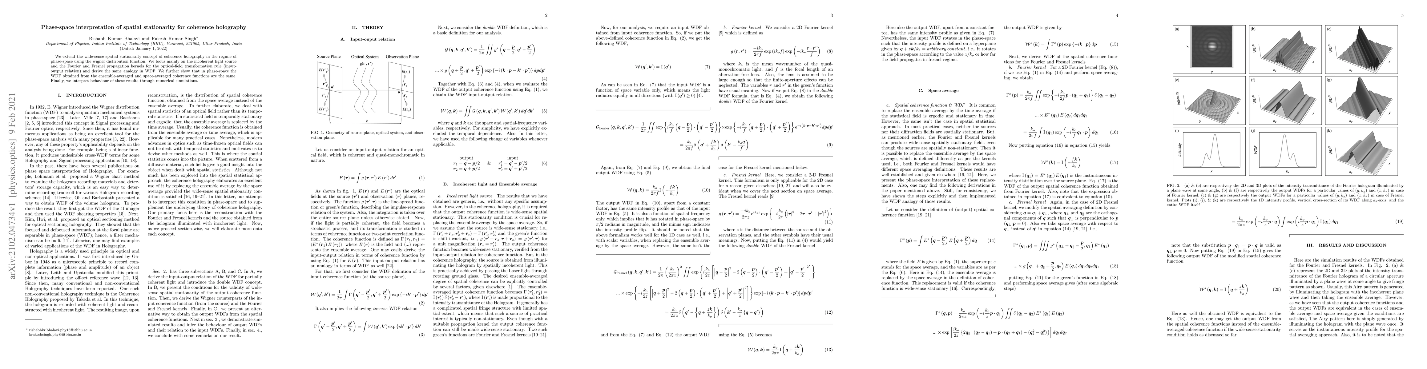 This research contributes to our understanding of coherence holography and its applications, with potential implications for various optical phenomena.