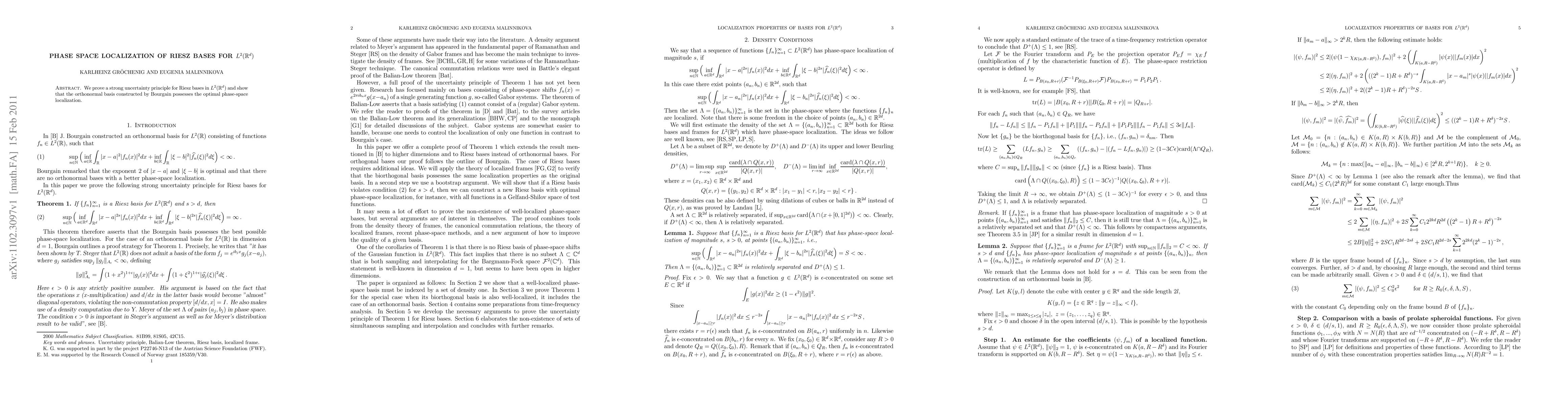 Summary: This paper establishes a strong uncertainty principle for Riesz bases in L^2(R^d) and demonstrates that Bourgain's orthonormal basis achieves the best possible phase-space localization.