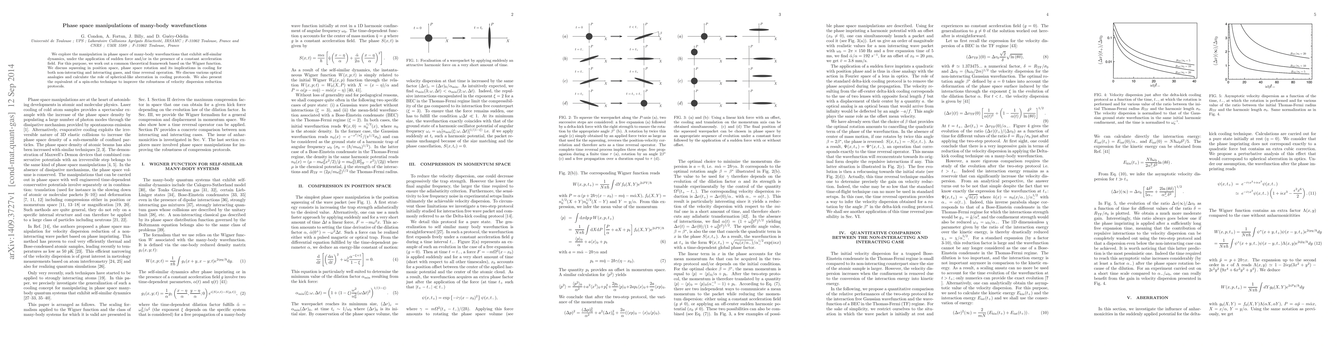 This paper explores phase space manipulations of many-body wavefunctions under sudden force or acceleration, discussing techniques for cooling and improving velocity dispersion, with implications for quantum simulations and optical analogies.