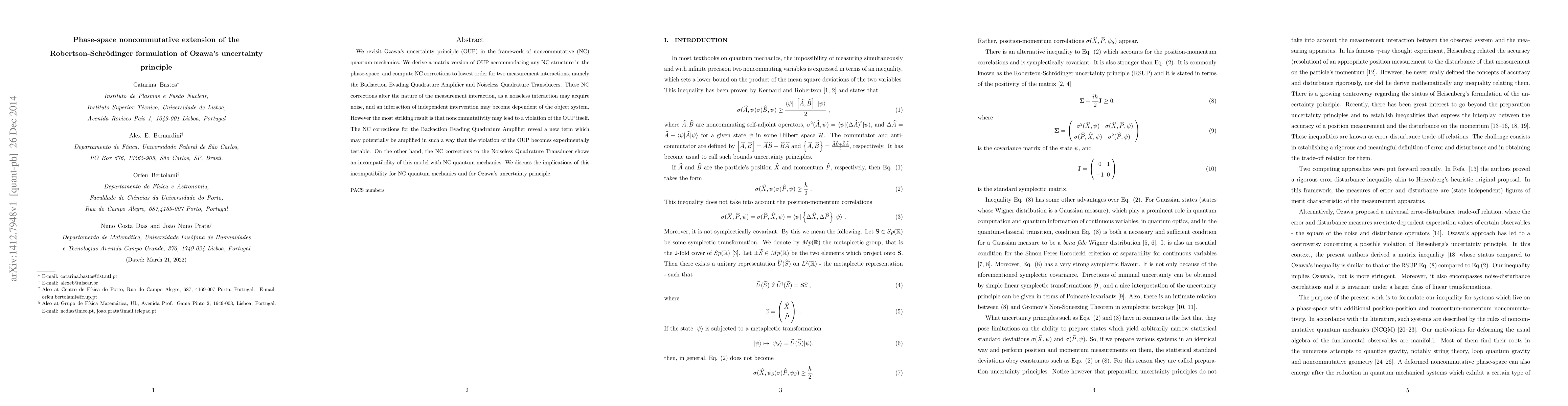 We revisit Ozawa's uncertainty principle (OUP) in the framework of noncommutative (NC) quantum mechanics. We derive a matrix version of OUP accommodating any NC structure in the phase-space, and compute NC corrections to lowest order for two measurement interactions, namely the Backaction Evading Quadrature Amplifier and Noiseless Quadrature Transducers. These NC corrections alter the nature of the measurement interaction, as a noiseless interaction may acquire noise, and an interaction of independent intervention may become dependent of the object system. However the most striking result is that noncommutativity may lead to a violation of the OUP itself. The NC corrections for the Backaction Evading Quadrature Amplifier reveal a new term which may potentially be amplified in such a way that the violation of the OUP becomes experimentally testable. On the other hand, the NC corrections to the Noiseless Quadrature Transducer shows an incompatibility of this model with NC quantum mechanics. We discuss the implications of this incompatibility for NC quantum mechanics and for Ozawa's uncertainty principle.