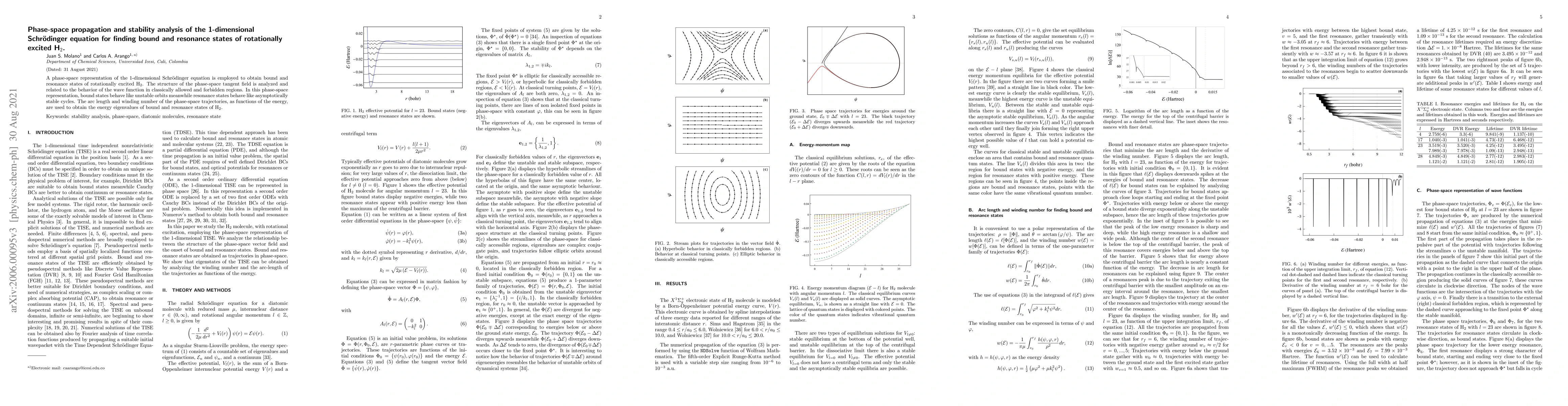 This paper employs phase-space methods to analyze the 1-dimensional Schrödinger equation for rotationally excited H$_2$, revealing that bound states correspond to unstable orbits while resonance states resemble asymptotically stable cycles. The study provides a comprehensive energy-momentum diagram lattice for H$_2$ and uses phase-space trajectory properties to determine energy eigenvalues.