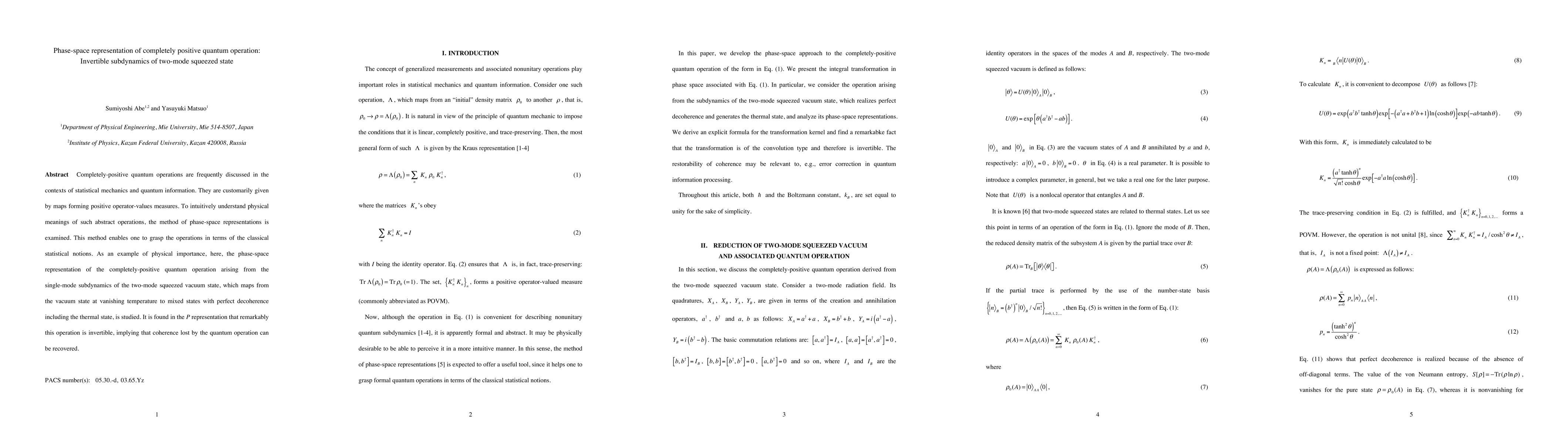 This paper explores the phase-space representation of completely positive quantum operations, focusing on the single-mode subdynamics of two-mode squeezed vacuum states. It reveals that the operation, which transforms vacuum states to thermal states, is invertible in the $P$ representation, indicating that lost coherence can be recovered.