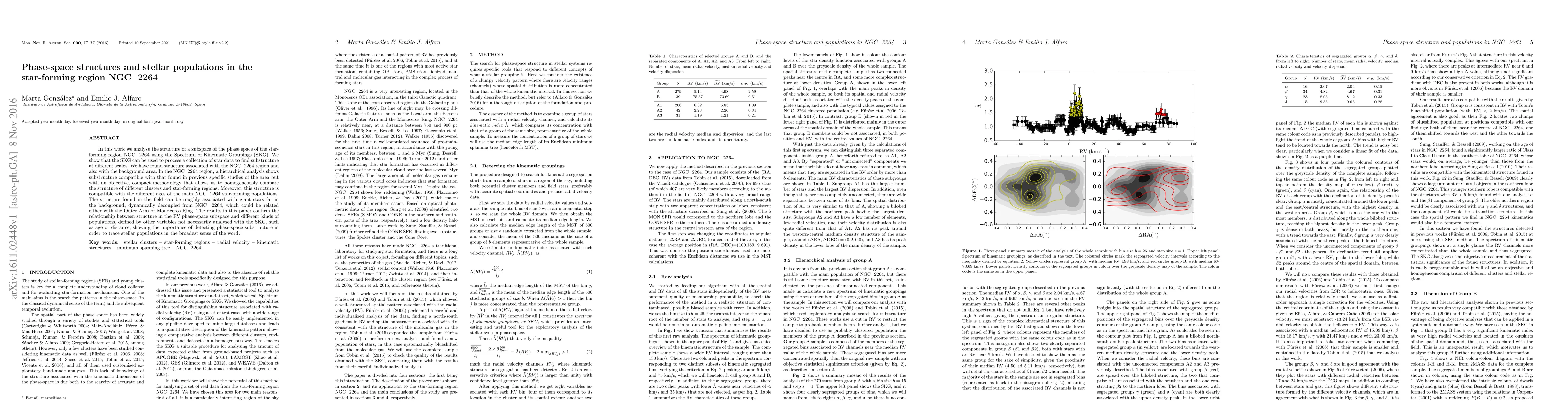 This paper uses the Spectrum of Kinematic Groupings (SKG) to analyze phase-space structures in the star-forming region NGC 2264, revealing substructures linked to different stellar populations and ages. It also identifies background field structures possibly related to distant giant stars.