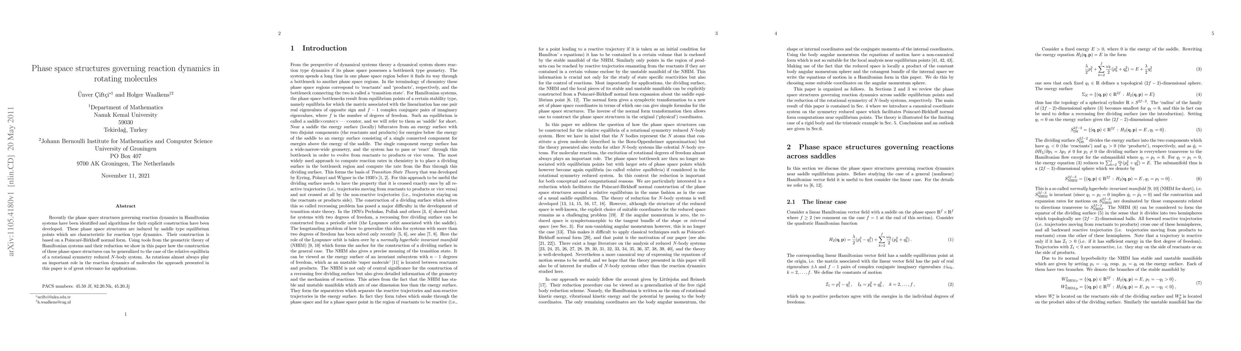 This paper develops algorithms for constructing phase space structures in Hamiltonian systems, particularly focusing on saddle type equilibria in reaction dynamics. It extends these methods to rotationally symmetric $N$-body systems, highlighting the relevance for understanding reaction dynamics in rotating molecules.