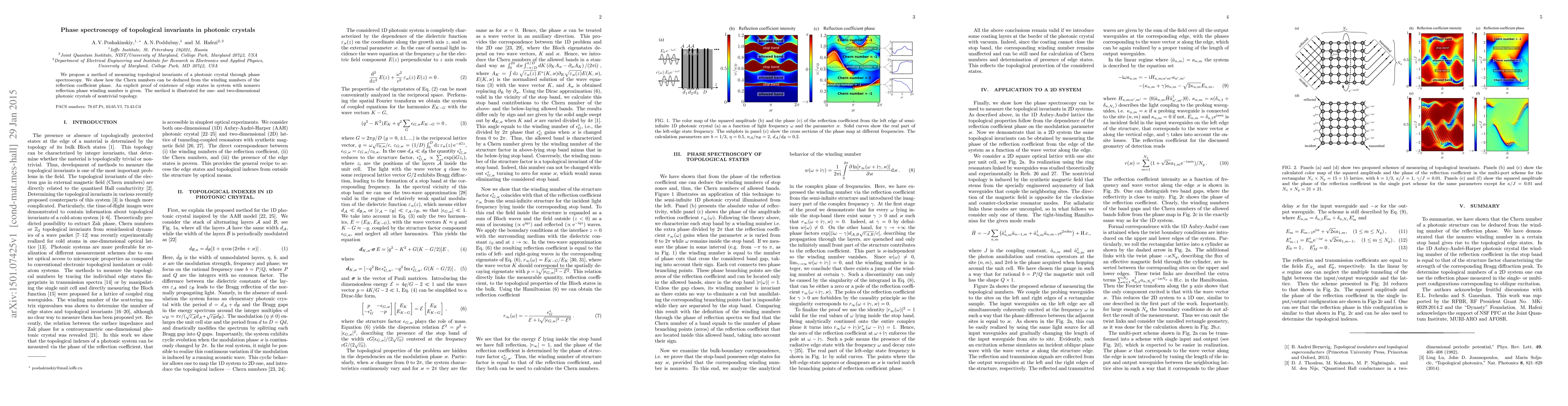 This paper introduces a phase spectroscopy technique to measure topological invariants in photonic crystals, demonstrating how Chern numbers correlate with reflection coefficient phase winding numbers, and validates the presence of edge states in such systems. The method is exemplified through one- and two-dimensional photonic crystal models with nontrivial topologies.