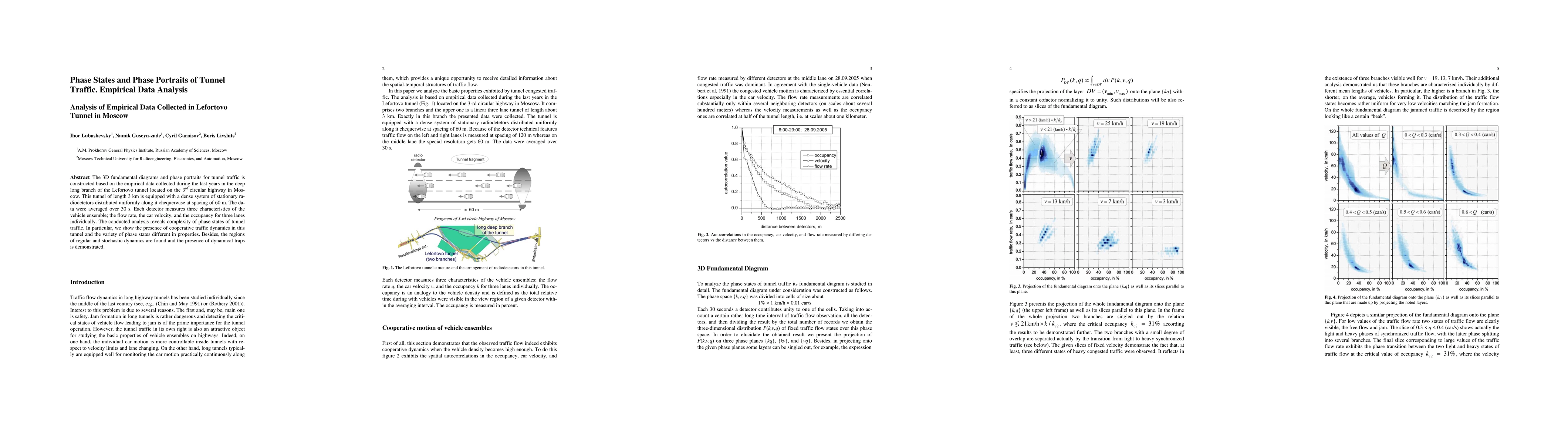This study constructs 3D fundamental diagrams and phase portraits for tunnel traffic using empirical data from the Lefortovo tunnel in Moscow, revealing complex phase states and cooperative traffic dynamics. The analysis identifies regions of regular and stochastic dynamics, and demonstrates the presence of dynamical traps.