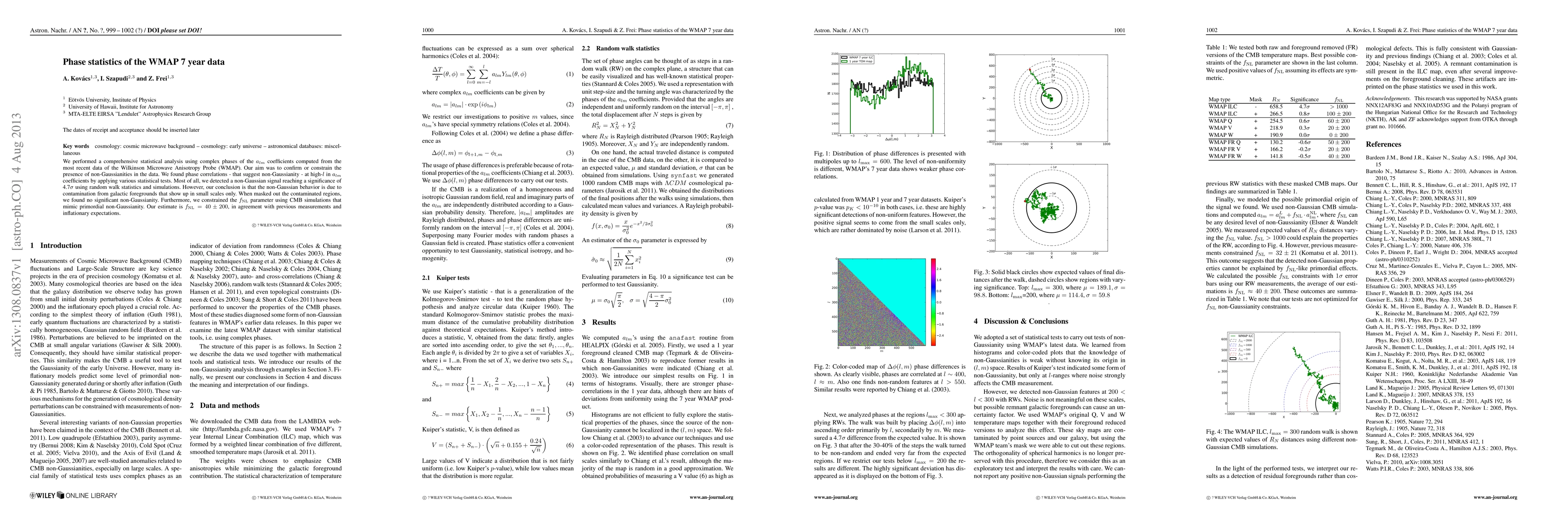 Researchers analyzed WMAP data for signs of non-Gaussianity, finding a statistically significant signal that was later attributed to galactic foregrounds; the study constrained the f_NL parameter to be within previous measurements' ranges.