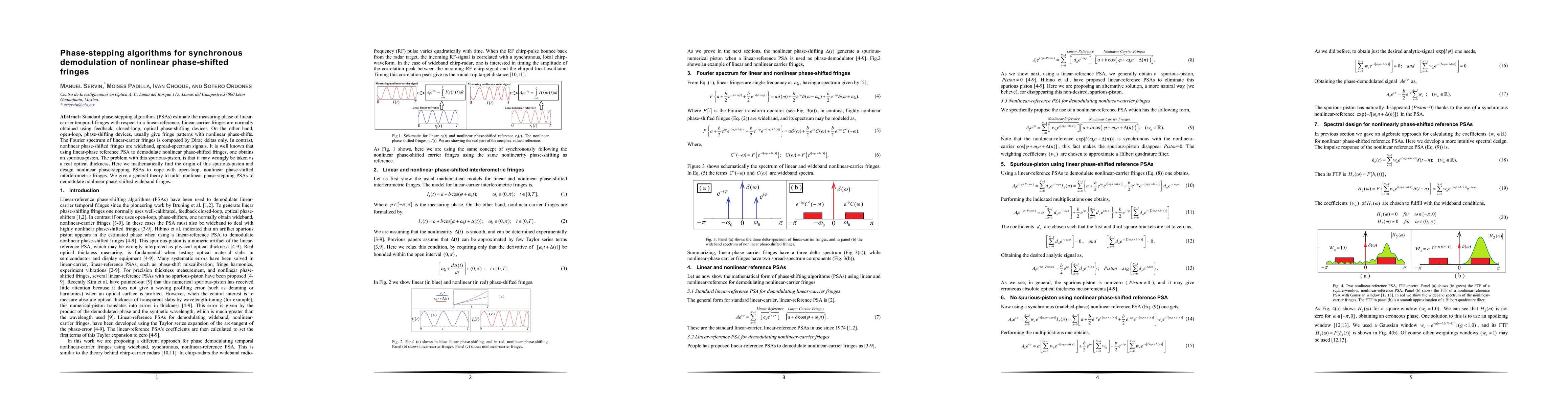 This paper develops nonlinear phase-stepping algorithms to accurately demodulate fringes with nonlinear phase-shifts, addressing the issue of spurious-piston that arises when using linear-phase reference algorithms. It provides a theoretical framework for tailoring these algorithms to handle wideband, spread-spectrum signals from open-loop phase-shifting devices.