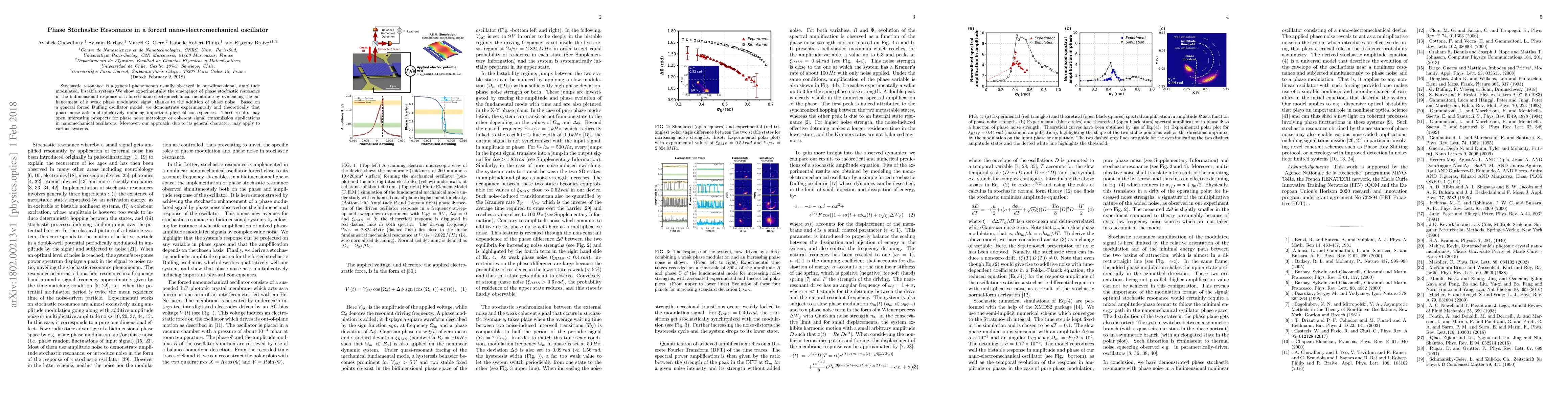 This paper experimentally demonstrates the emergence of phase stochastic resonance in a forced nano-electromechanical oscillator, showing that phase noise enhances the detection of weak phase-modulated signals. The findings suggest potential applications in phase noise metrology and coherent signal transmission in nanomechanical systems.