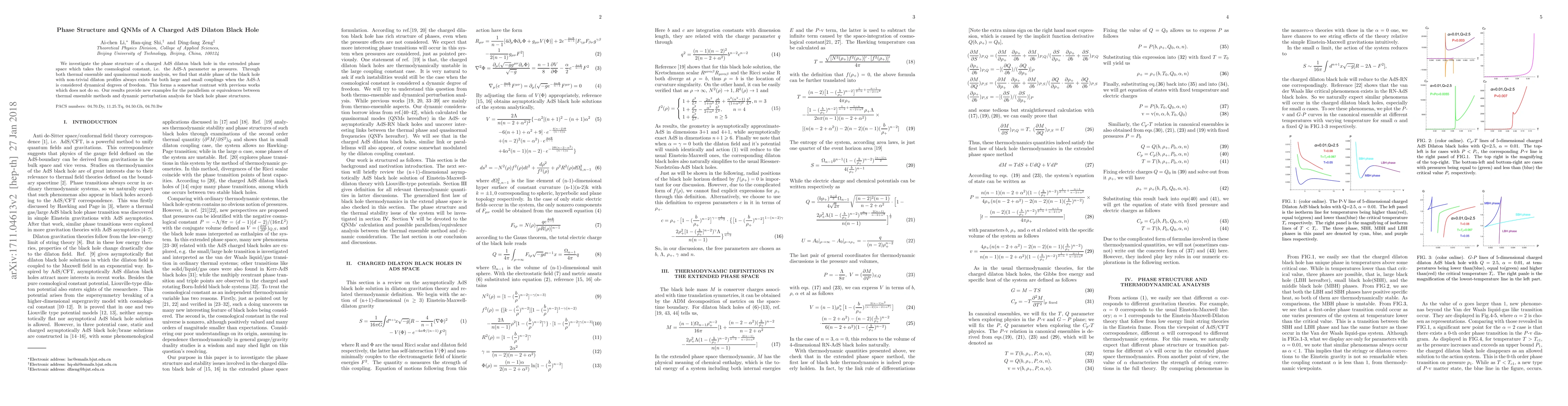 This paper explores the phase structure of charged AdS dilaton black holes in an extended phase space, treating the AdS-$\Lambda$ parameter as pressure. It finds stable phases for both large and small couplings, contrasting previous studies, and demonstrates the equivalence between thermal ensemble methods and quasinormal mode analysis for black hole dynamics.