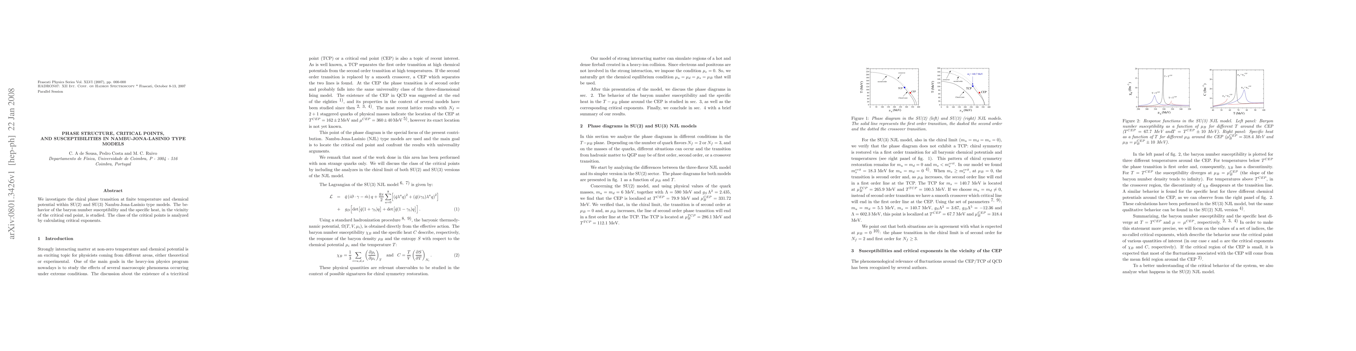 This paper examines the chiral phase transition in SU(2) and SU(3) Nambu-Jona-Lasinio models at finite temperature and chemical potential, focusing on the baryon number susceptibility and specific heat near the critical end point, and analyzing the class of critical points through calculated critical exponents.