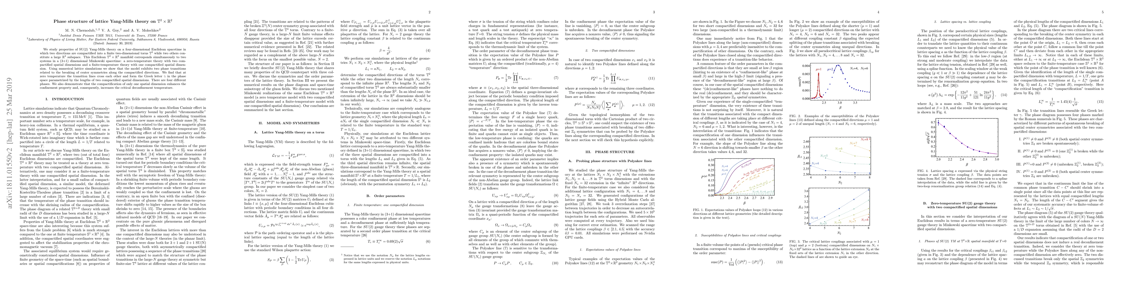 We study properties of SU(2) Yang-Mills theory on a four-dimensional Euclidean spacetime in which two directions are compactified into a finite two-dimensional torus ${\mathbb T}^2$ while two others constitute a large ${\mathbb R}^2$ subspace. This Euclidean ${\mathbb T}^2 \times {\mathbb R}^2$ manifold corresponds simultaneously to two systems in a (3+1) dimensional Minkowski spacetime: a zero-temperature theory with two compactified spatial dimensions and a finite-temperature theory with one compactified spatial dimension. Using numerical lattice simulations we show that the model exhibits two phase transitions related to the breaking of center symmetries along the compactified directions. We find that at zero temperature the transition lines cross each other and form the Greek letter $\gamma$ in the phase space parametrized by the lengths of two compactified spatial dimensions. There are four different phases. We also demonstrate that the compactification of only one spatial dimension enhances the confinement property and, consequently, increases the critical deconfinement temperature.