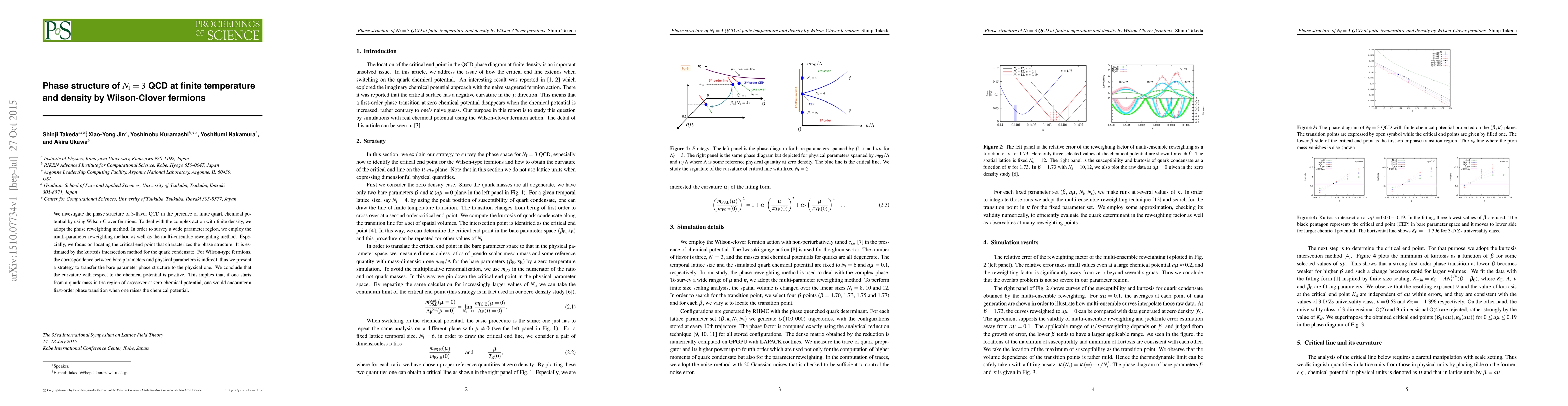This study explores the phase structure of 3-flavor QCD at finite temperature and density using Wilson-Clover fermions and the phase reweighting method. The research identifies the critical end point via the kurtosis intersection method and concludes that increasing the chemical potential leads to a first-order phase transition from a crossover region at zero chemical potential.