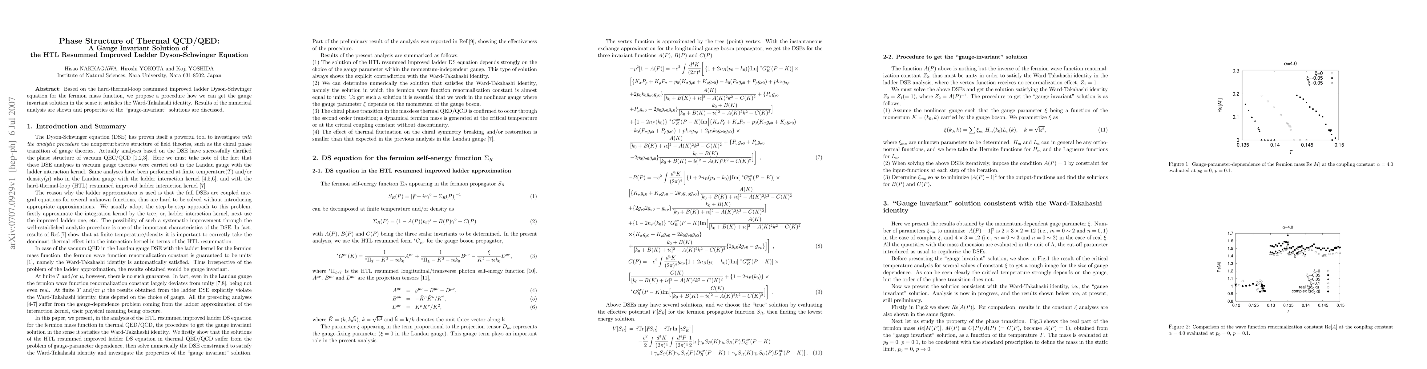 Based on the hard-thermal-loop resummed improved ladder Dyson-Schwinger quation for the fermion mass function, we propose a procedure how we can get the gauge invariant solution in the sense it satisfies the Ward-Takahashi identity. Results of the numerical analysis are shown and properties of the ``gauge-invariant'' solutions are discussed.