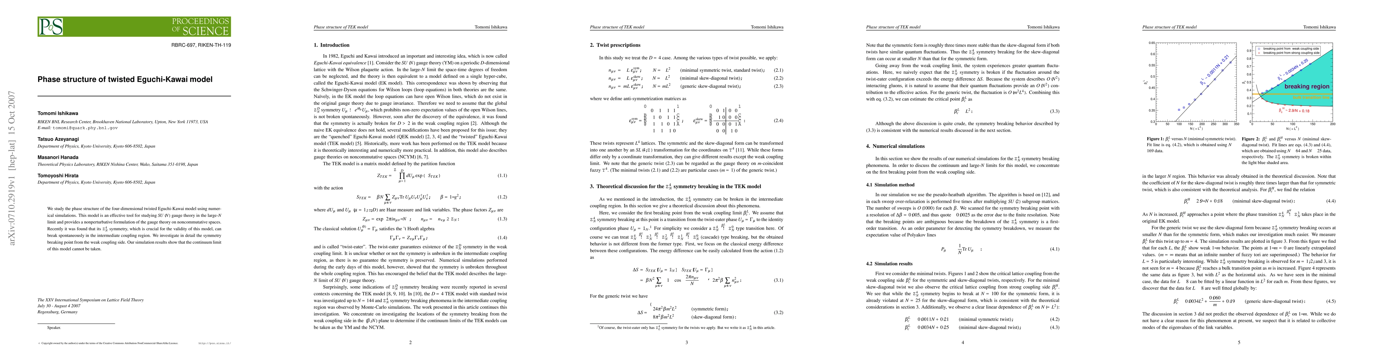 The study uses numerical simulations to investigate the phase structure of the four-dimensional twisted Eguchi-Kawai model, revealing spontaneous symmetry breaking in the intermediate coupling region and indicating that the continuum limit of the model is unattainable.