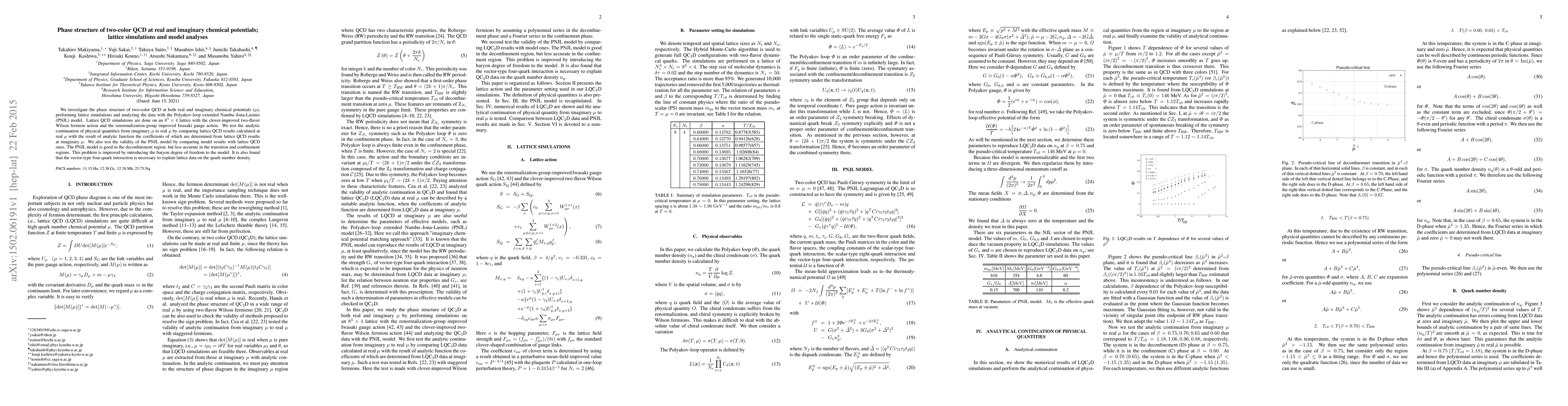 We investigate the phase structure of two-color QCD at both real and imaginary chemical potentials mu, performing lattice simulations and analyzing the data with the Polyakov-loop extended Nambu--Jona-Lasinio (PNJL) model. Lattice QCD simulations are done on an 8^3 times 4 lattice with the clover-improved two-flavor Wilson fermion action and the renormalization-group improved Iwasaki gauge action. We test the analytic continuation of physical quantities from imaginary mu to real mu by comparing lattice QCD results calculated at real mu with the result of analytic function the coefficients of which are determined from lattice QCD results at imaginary mu. We also test the validity of the PNJL model by comparing model results with lattice QCD ones. The PNJL model is good in the deconfinement region, but less accurate in the transition and confinement regions. This problem is improved by introducing the baryon degree of freedom to the model. It is also found that the vector-type four-quark interaction is necessary to explain lattice data on the quark number density.