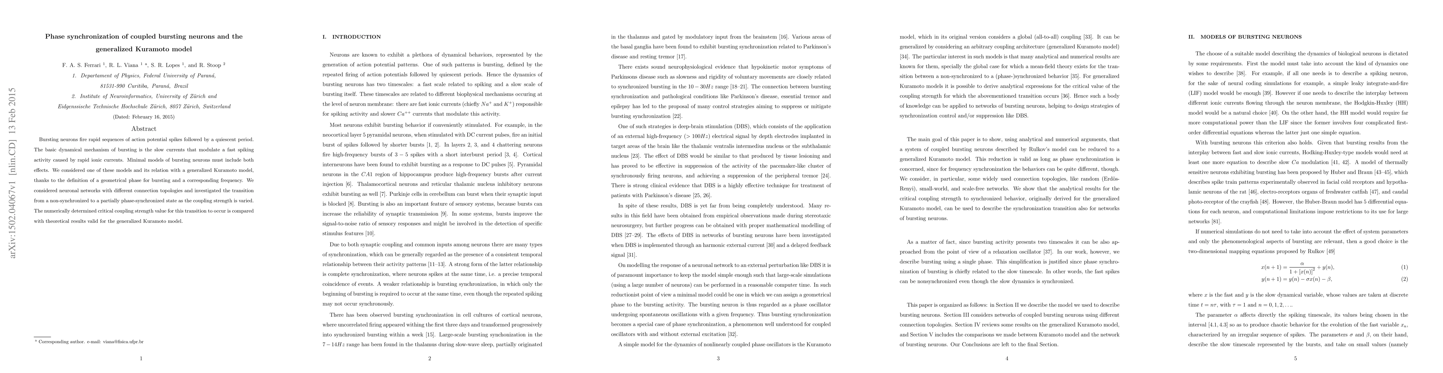 This paper investigates the synchronization dynamics of coupled bursting neurons using a generalized Kuramoto model, identifying the transition from non-synchronized to partially phase-synchronized states as coupling strength increases. Theoretical predictions for the critical coupling strength are compared with numerical results.