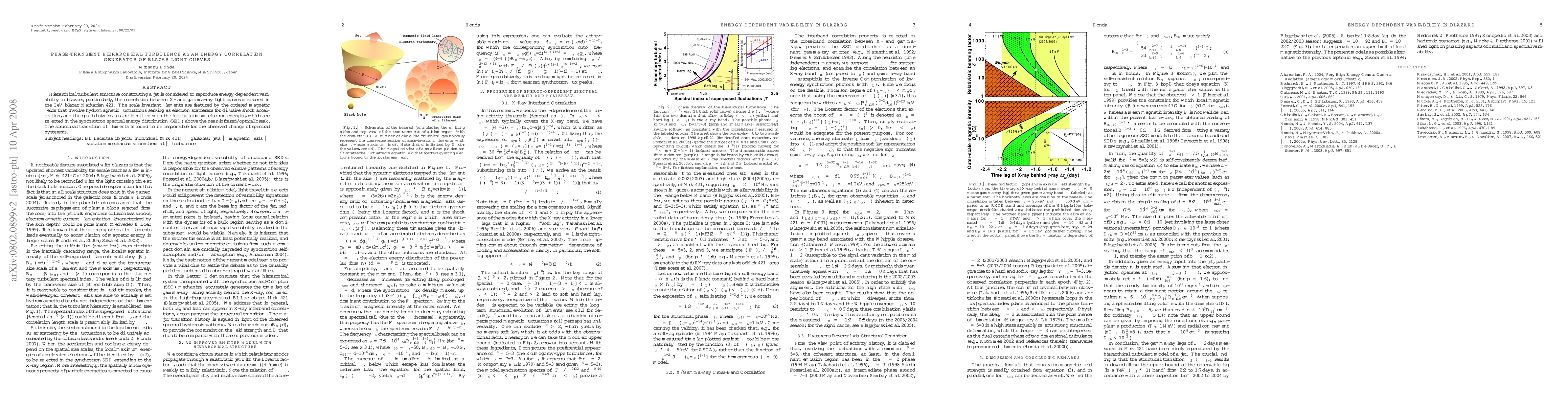 Hierarchical turbulent structure constituting a jet is considered to reproduce energy-dependent variability in blazars, particularly, the correlation between X- and gamma-ray light curves measured in the TeV blazar Markarian 421. The scale-invariant filaments are featured by the ordered magnetic fields that involve hydromagnetic fluctuations serving as electron scatterers for diffusive shock acceleration, and the spatial size scales are identified with the local maximum electron energies, which are reflected in the synchrotron spectral energy distribution (SED) above the near-infrared/optical break. The structural transition of filaments is found to be responsible for the observed change of spectral hysteresis.