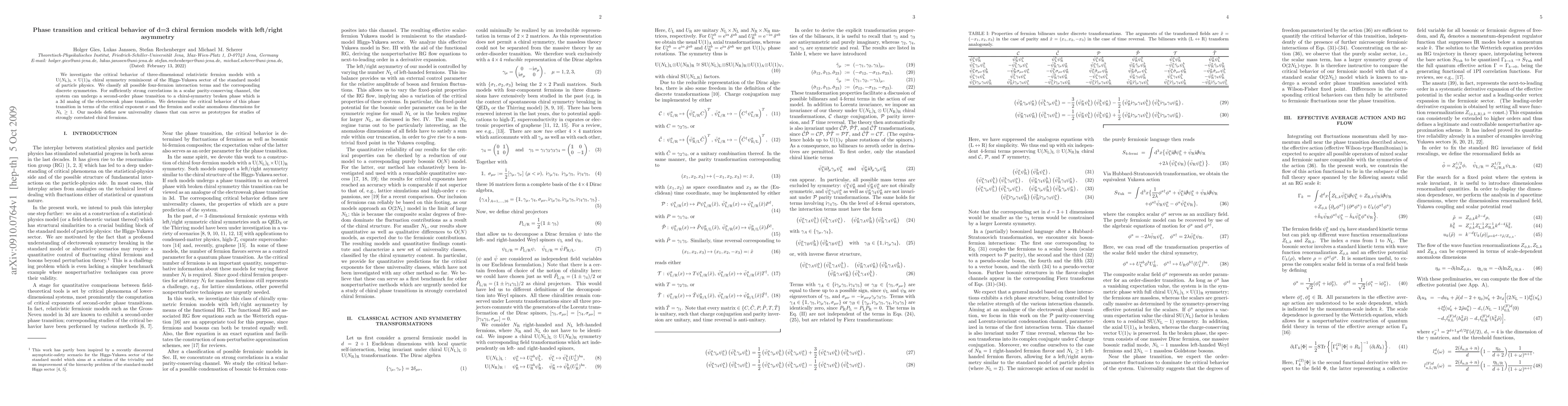We investigate the critical behavior of three-dimensional relativistic fermion models with a U(N_L)_L x U(1)_R chiral symmetry reminiscent of the Higgs-Yukawa sector of the standard model of particle physics. We classify all possible four-fermion interaction terms and the corresponding discrete symmetries. For sufficiently strong correlations in a scalar parity-conserving channel, the system can undergo a second-order phase transition to a chiral-symmetry broken phase which is a 3d analog of the electroweak phase transition. We determine the critical behavior of this phase transition in terms of the critical exponent $\nu$ and the fermion and scalar anomalous dimensions for N_L >= 1. Our models define new universality classes that can serve as prototypes for studies of strongly correlated chiral fermions.